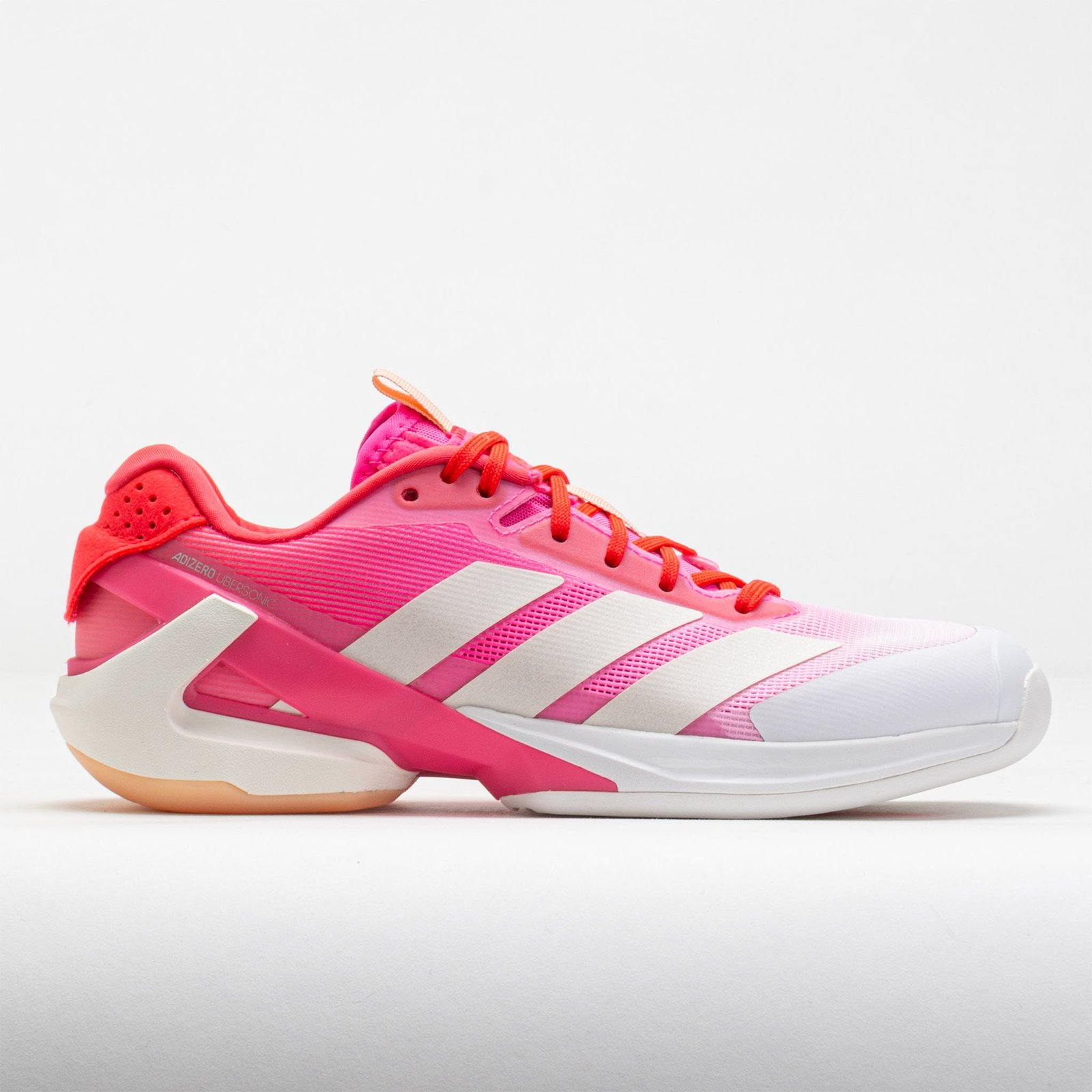 React quickly during the match in the adidas Adizero Ubersonic 5! Optimized for instinctive tennis. its reinforced mesh upper supports lateral movements while a responsive Lightstrike midsole keeps you close to the court. Underneath. a Speedframe outsole adds lockdown at the heel so you stay stable on hard courts. point after point. With the speed to reach any shot. the adidas adizero ubersonic 5 lets you trust your instincts during the match!