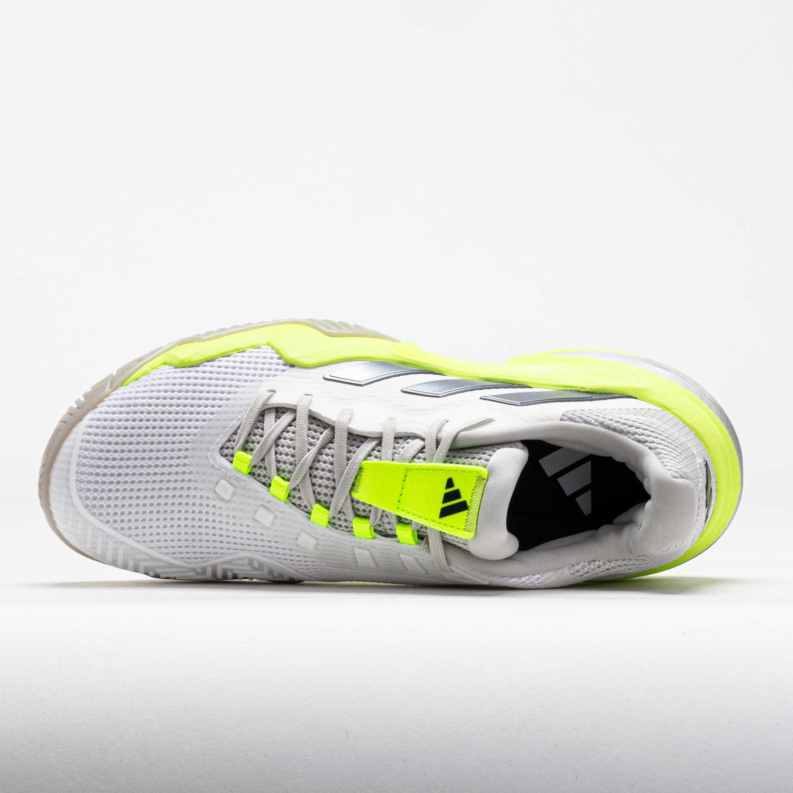 Take control in theadidasBarricade 13!This iconic tennis shoesupportsevery step on the court.Stay comfortable during the match in the breathable mesh upper. A firmer Repetitor+ foam in the forefoot provides lateral stability. while a softer foam in the heel provides shock absorption. Enjoy a plush step-in feel from the soft tongue and revised GEOFIT pods in the heel. Built for baseline grinders. theadidasBarricade helps you control the court!
