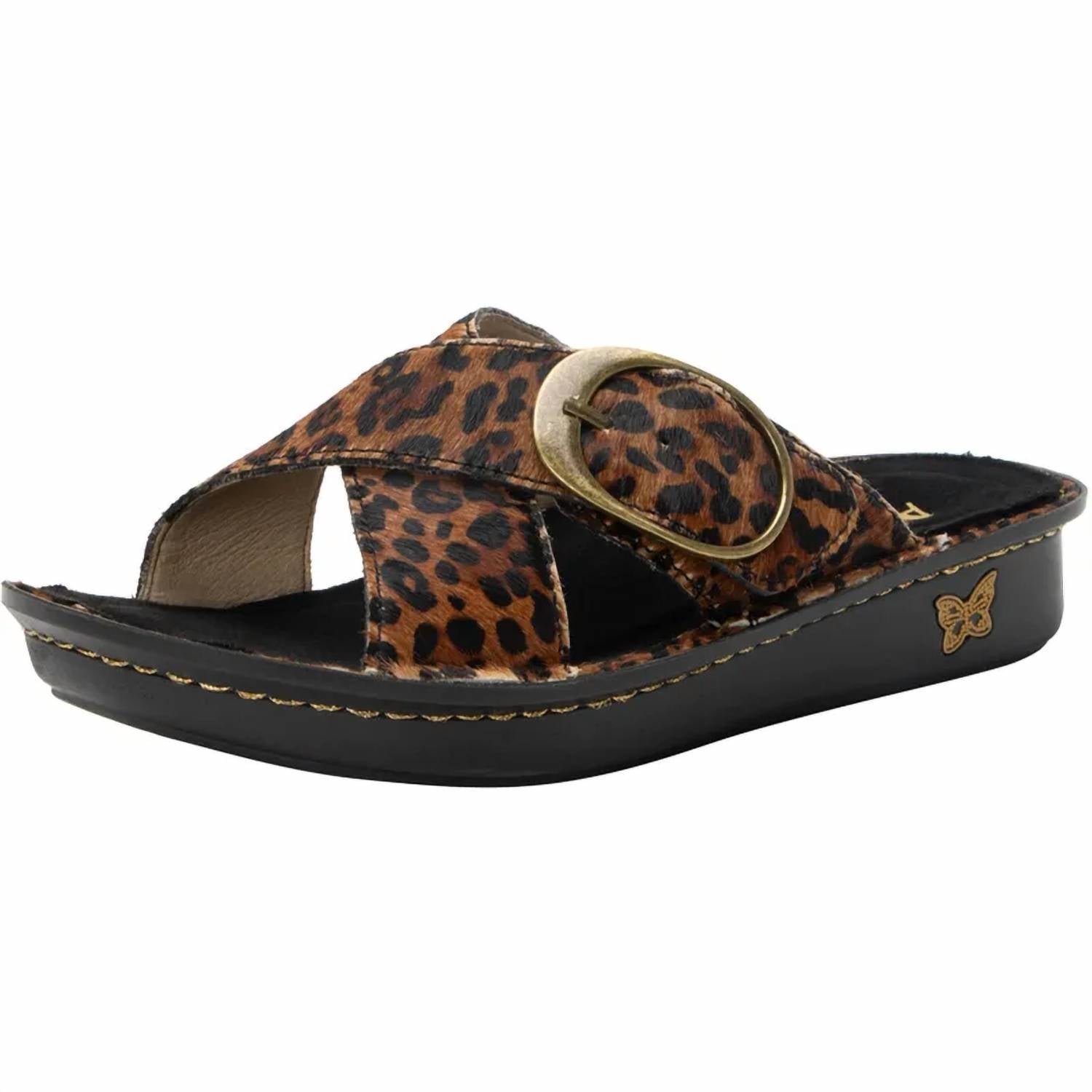 Classicly cute and all-day-wearable. We love this sandal.The classic crisscross sandal takes a bold step forward in this handstitched version with an ornamental buckle set on an adjustable hook-and-loop strap. A removable contoured footbed made of cork and memory foam, seamlessly fit into a mini outsole for walking ease. Hand stitched American Podiatric Medical Association (APMA) Accepted Patented removable footbed; replacement available in medium and wide Horse hair or leather upper and lining Adjustable hook-and-loop closure with a ornamental buckle Durable microsuede footbed Heel height: 1′