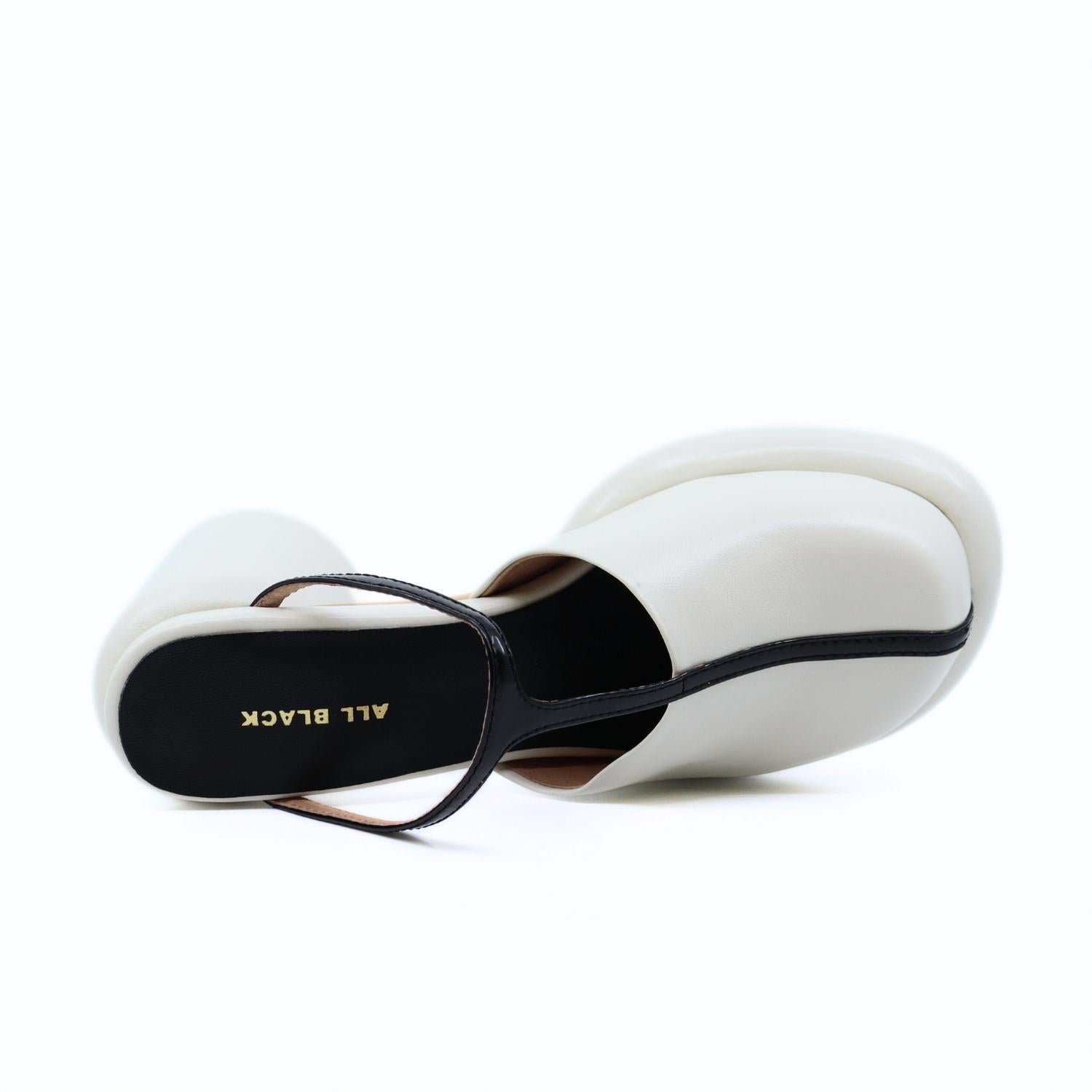 A trend that everyone is loving and this style might just be our favorite.Step into sophisticated style with the Women's Mod T Mule by ALL BLACK, featuring a sleek black trim for a striking contrast against its pristine white leather. Designed with a minimalist T-strap and a sculptural block heel, these medium-width mules offer a contemporary edge to your spring wardrobe. The round toe shape and slip-on design ensure comfort and effortless wear for back-to-school events or any Easter occasion. Originating from a bold and modern trend, these mules are the quintessential addition to any minimalist collection.
