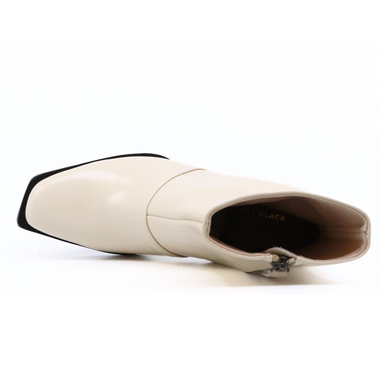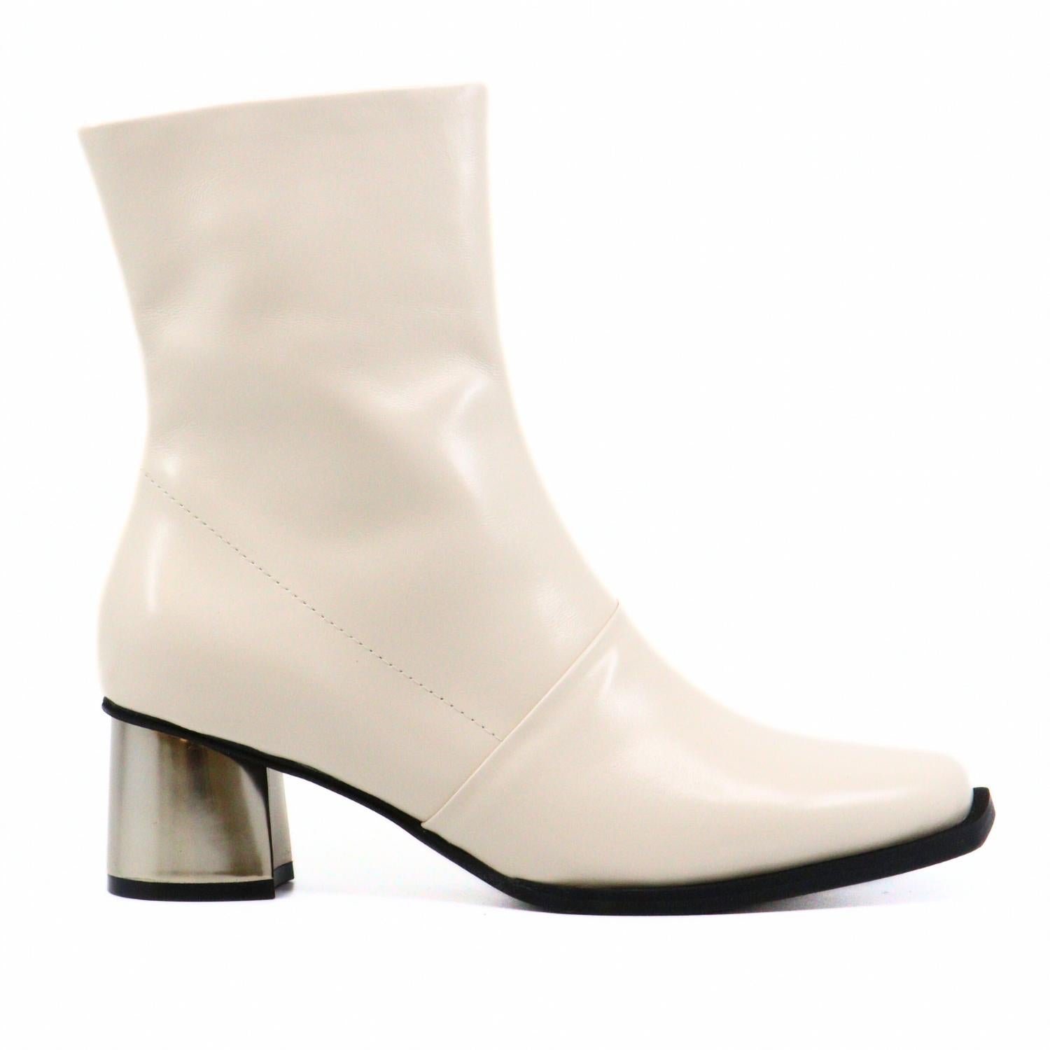 Say hello to the perfect, most versatile boot. The ankle height makes this style easily transition from day to night. Wear them with your favorite skinny jeans and tee for a more laid back look, or pair them with your favorite mini dress and jacket for a night out on the town.Gorgeous, sumptuous white leather with a gunmetal block heel makes this shoe sophisticated and edgy at the same time. Rounded white leather toe with exaggerated angled square toe contrast soles, inside zipper.?Wear with a skirt or cropped white denim. Perfect for going from day to a night. Upper: Leather. Sole: Synthetic. Heel Height: 2 inches.
