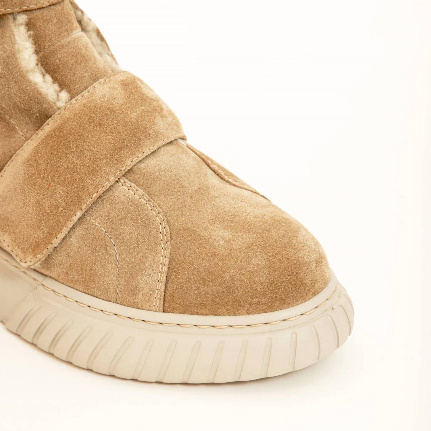 Say hello to the perfect, most versatile boot. The ankle height makes this style easily transition from day to night. Wear them with your favorite skinny jeans and tee for a more laid back look, or pair them with your favorite mini dress and jacket for a night out on the town.Mix of leather and shearling. Anti-shock removable insole in leather. Leather lining. Velcro stretches. Easy to wear slip-on design. Extra light sewn rubber sole. Made in Italy.