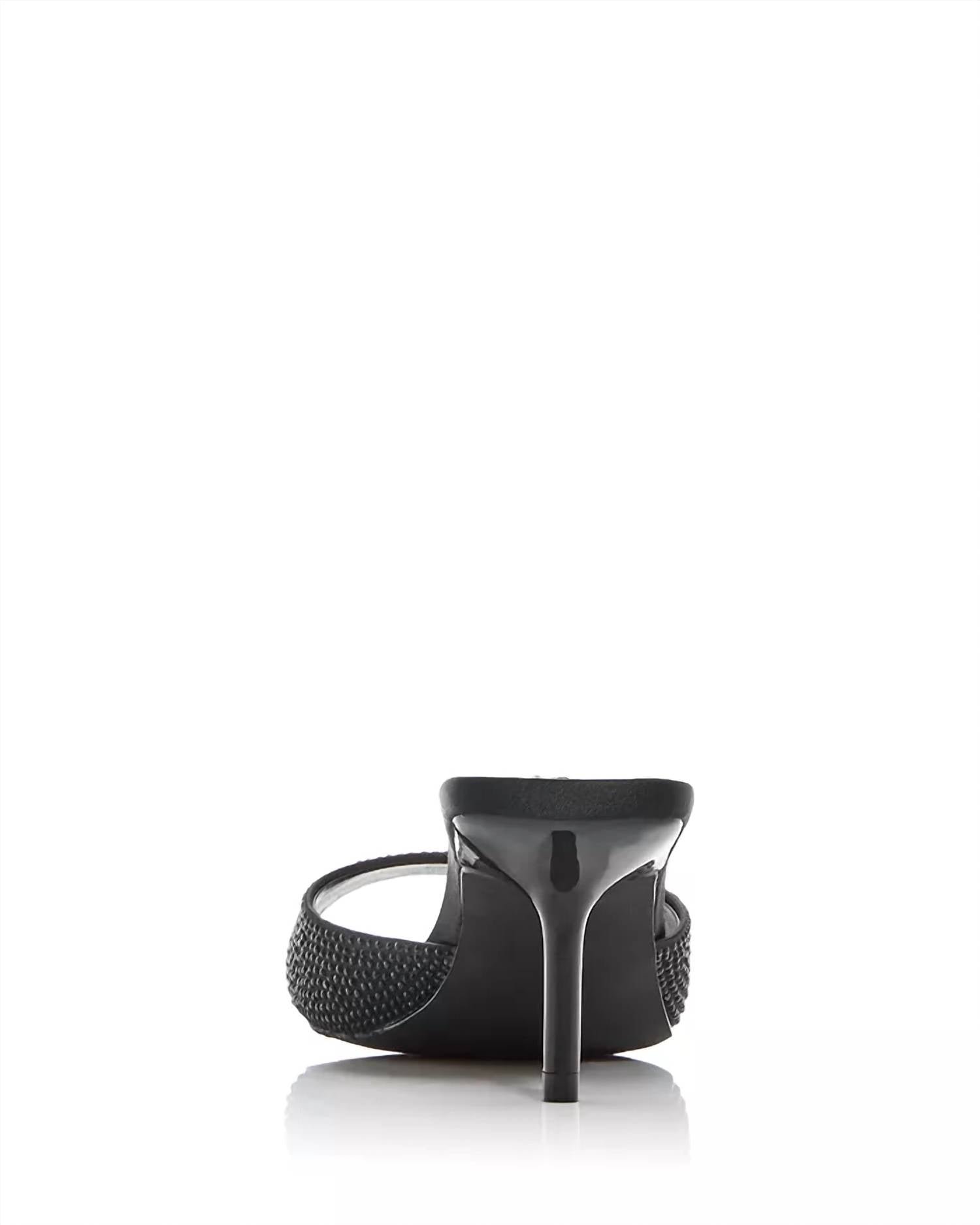 A trend that everyone is loving and this style might just be our favorite.These sandals feature an open square toe and a slip-on design, adorned with allover crystal embellishments for a glamorous touch. The 1.5′ stiletto heel adds elegance, while the fabric upper, synthetic lining, and sole offer both comfort and style.