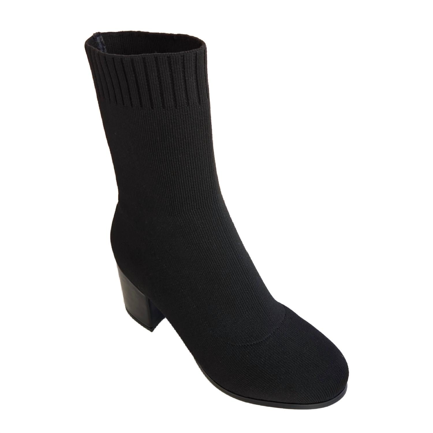 Upgrade your shoe game with these classic heeled boots, designed to merge sophistication and style. Comfortable enough for long days or a night out on the town.Introducing the Women's Sock Style Ankle Heel Boots by AQUA, a perfect addition to your fall wardrobe. Designed with a round toe and block heel, these boots offer a high heel height of over 3 1/4 inches. Crafted from stretch knit material, they deliver a form-fitting silhouette that blends modern style with all-day comfort. An ideal choice for a dinner party, these mid-calf boots in classic black are the epitome of quiet luxury for the Thanksgiving season.