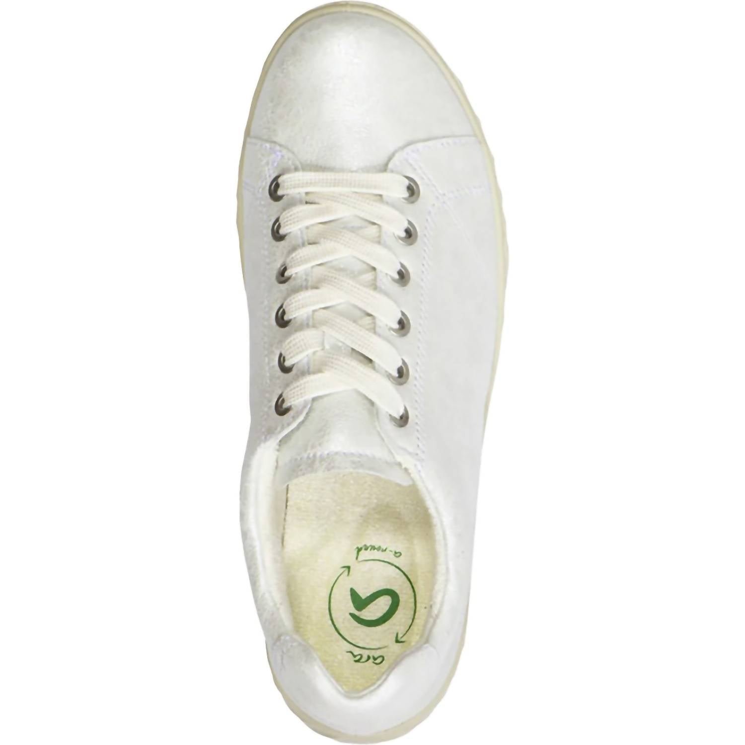 Get your daily steps in with these adorable sneakers.Introducing the Women's Alexandria Sneaker by Ara Shoes, a perfect blend of style and comfort. Crafted from luxurious calf leather uppers with a super soft bamboo terry lining, these sneakers ensure breathability and comfort. Featuring removable insoles and HighSoft Technology, they offer shock absorption for stress-free walking. Designed for summer streetwear, these white calf leather sneakers are a vacation-ready essential.