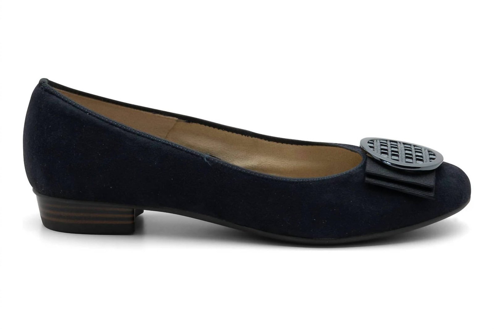 Loafers so versatile you can wear them with just about anything.Introducing the Women's Bambi Slip-on Flat by Ara Shoes, a perfect blend of comfort and style for any occasion. Crafted with a black Puntikid suede leather upper and detailed with a chic lattice brooch atop a grosgrain bow, these flats exude elegance for summer workwear or evening events. The almond toe design is complemented by a padded footbed featuring Ara's HighSoft technology, delivering shock absorption and superior breathability. Lined with leather and textile, it features a synthetic sole, ensuring unparalleled comfort and stress-free walking.
