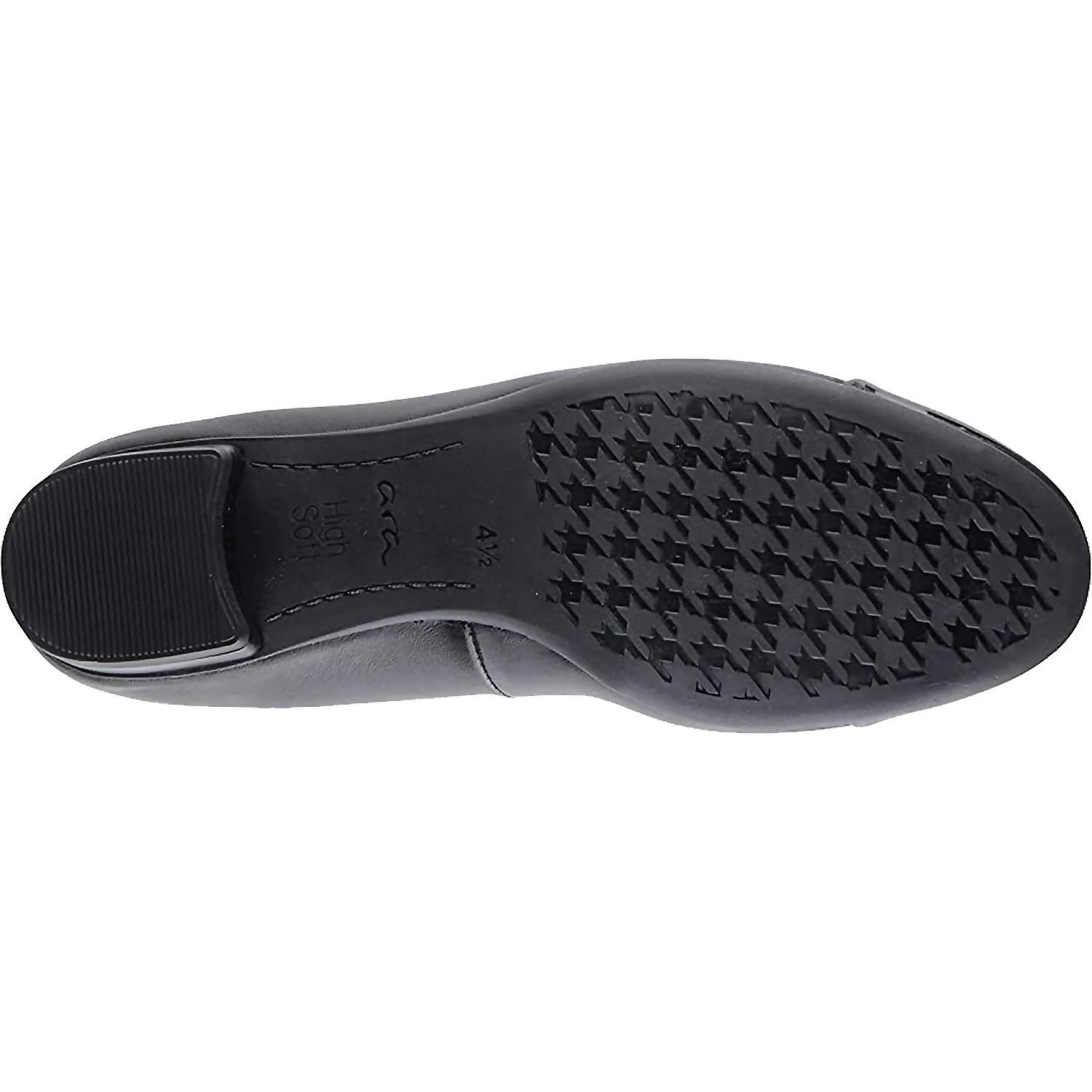 Loafers so versatile you can wear them with just about anything.Introducing the Women's Belinda Flat by Ara Shoes, a black minimalist ballet flat perfect for summer evening events. Crafted from super soft leather, this slip-on design features an almond toe with a classic cap toe detail and a delicate bow with hardware accents. HighSoft Technology and a flexible, ultra-light outsole offer superior comfort, while a padded insole with a special foam insert ensures a stress-free walk. Designed for an ideal fit with an elasticized topline and crafted to meet high environmental standards, these flats provide shock absorption and breathability for all-day comfort.