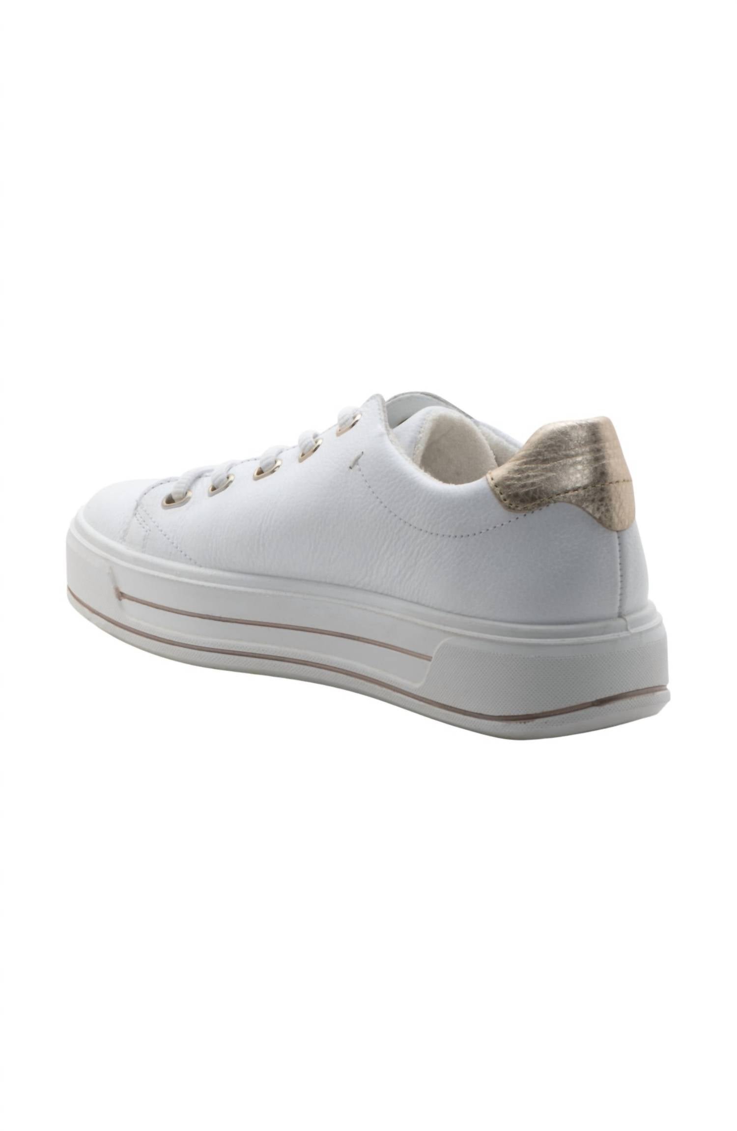 When fashion and function come together seamlessly.The Women's Crystal Elastic Lace Platform Cupsole Sneaker by Ara is your go-to for comfort and minimalist style. This sneaker, offered in chic white, features Leather construction with a textile lining and synthetic sole, incorporating Ara's HighSoft technology for outstanding comfort. Elastic laces allow for effortless pull-on wear, while a padded collar and foam cushioning enhance your walking experience. Imported and perfect for Spring travel, the sneaker includes a removable, cushioned insole with arch support and a flat heel of 1′ or less, catering to those seeking both style and functionality.