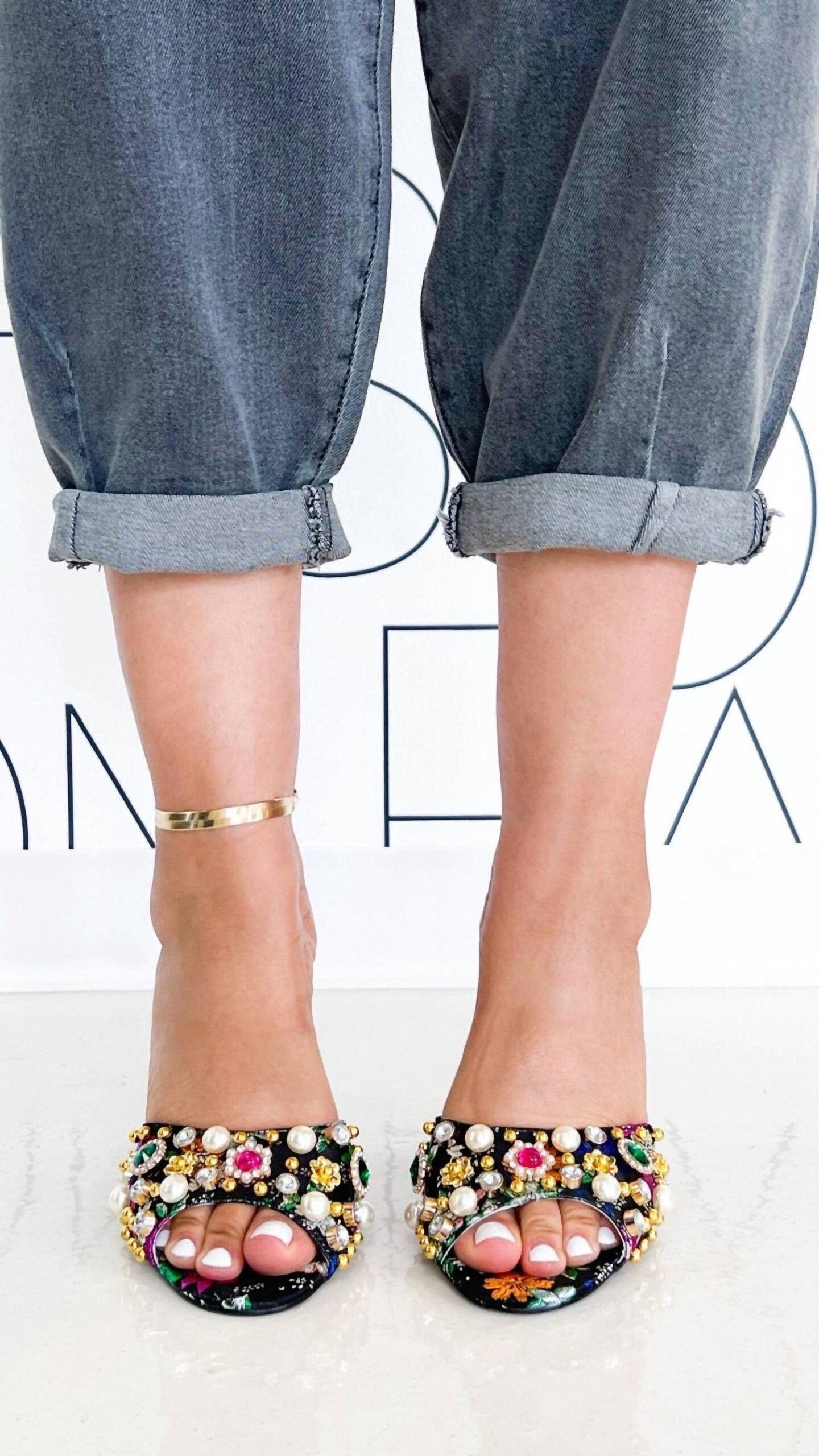 The perfect height for day to night.The Women's Judith Embellished Heels by Azalea Wang are an epitome of elegance and extravagance, adorned with pearls, beads, and crystals that shimmer on a vibrant floral jacquard backdrop. These statement heels stand tall with a 4 1/2′ heel and feature a synthetic upper, lining, and sole for a sophisticated finish. Representing Asian-owned creativity, these heels are designed for those who dare to make a glamourous statement. Toe Shape: Round Toe. Origin: Imported.
