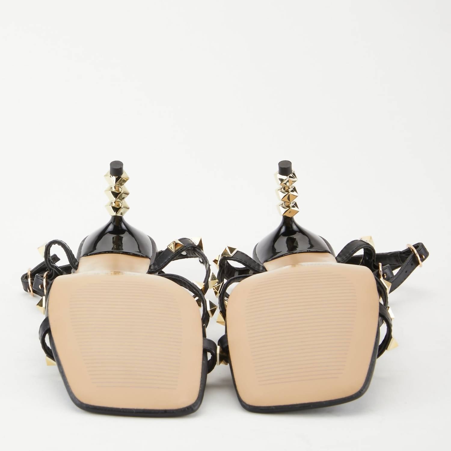 Classicly cute and all-day-wearable. We love this sandal.Studded strappy heels. The embellishments don't stop with the straps, they continue in a stacked formation to make up the 3 inch heel. Two adjustable straps make for a perfect fit. Upper: Synthetic. Lining: Synthetic. Insole: Synthetic. Outsole: Rubber. Closure: Buckle. Heel Height: 3′. Platform Height: 1/4′