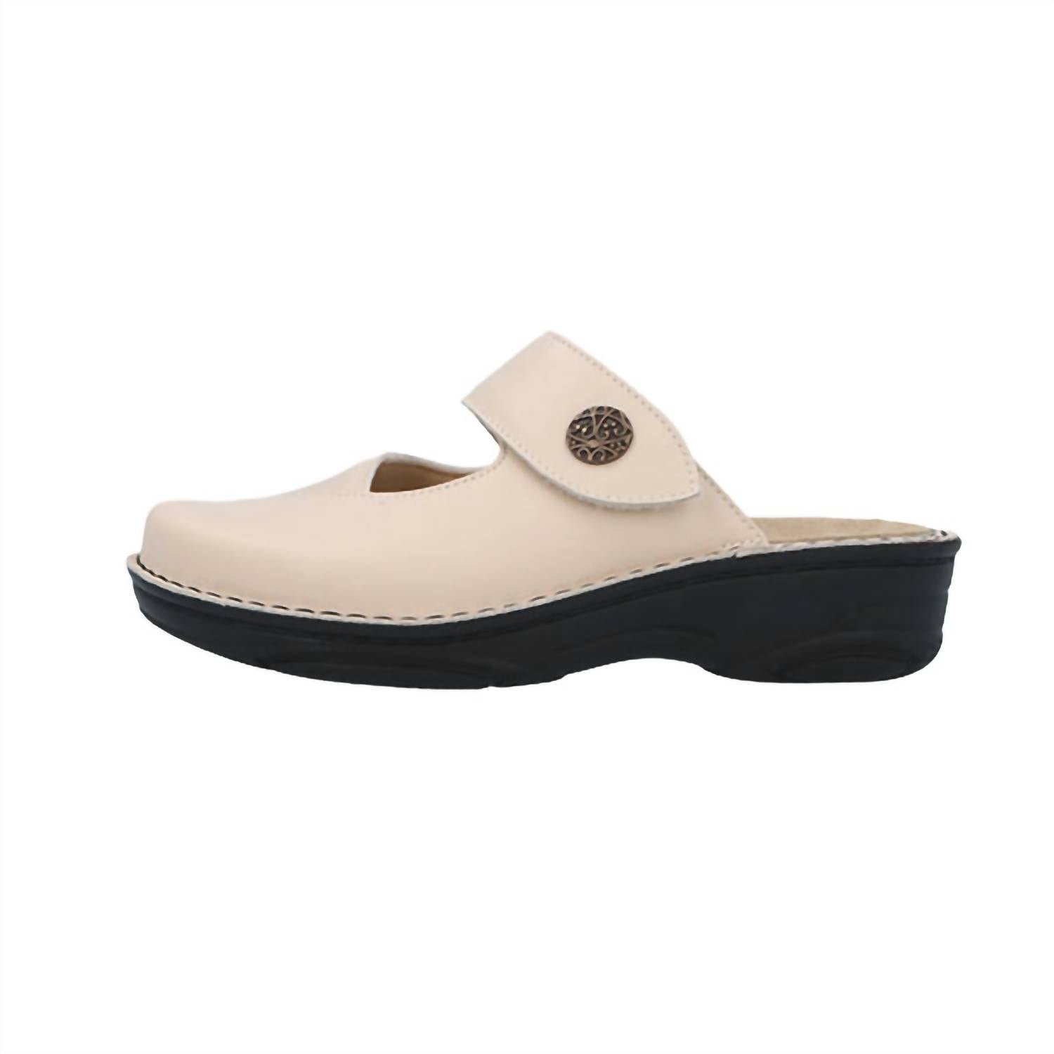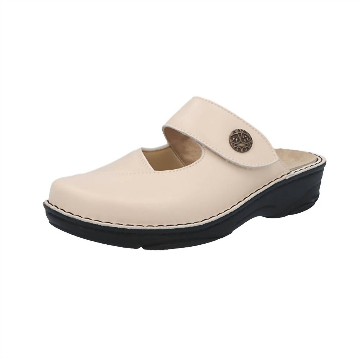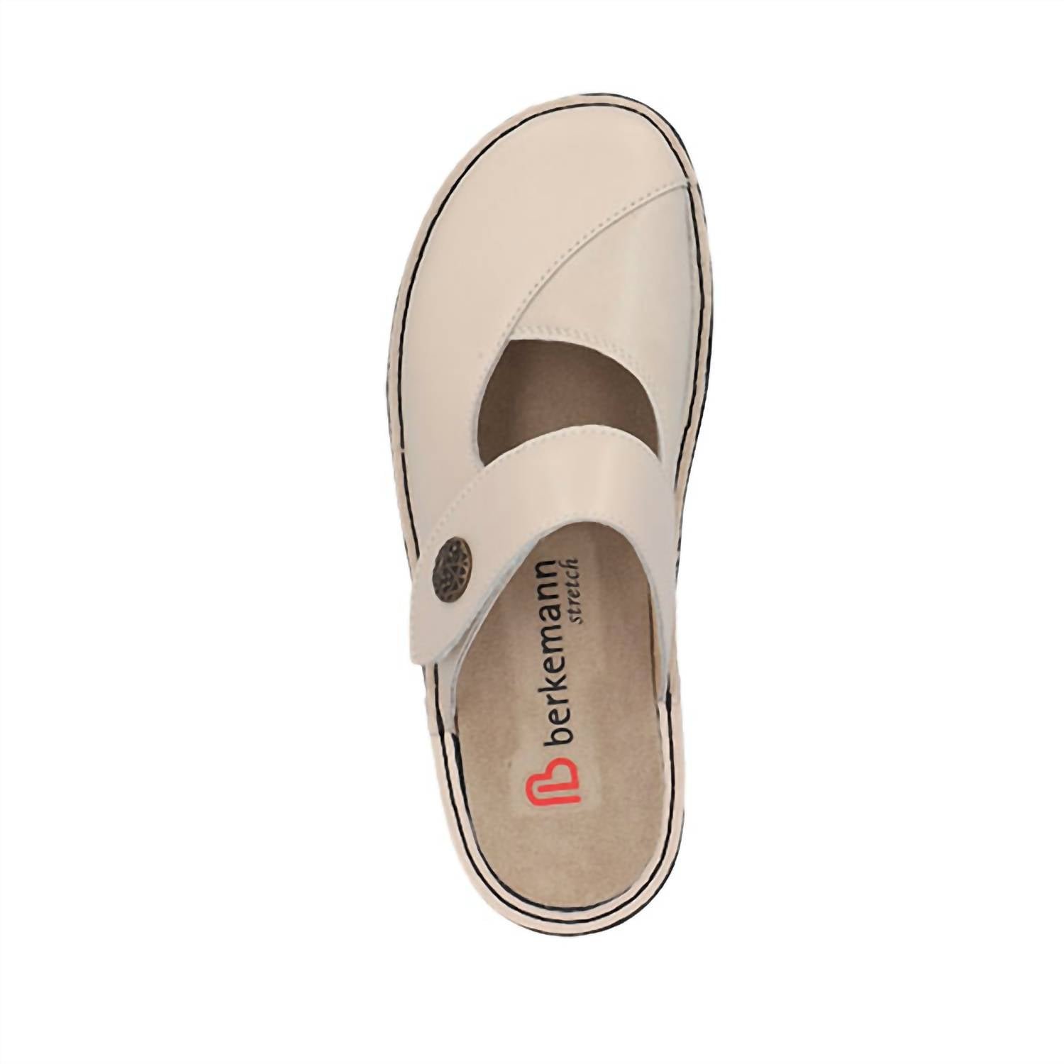 Stylish, comfy, and versatile. We can't find anything wrong with these.Experience comfort and style with the Women's Helaine Clog by Berkemann, designed in a sophisticated beige. Crafted from a unique combination of genuine-looking stretch material and leather, these clogs provide relief from pressure points and pain often associated with conditions like Hallux Valgus. With a round toe shape and a flexible hand-stitched seam joining the shaft and sole, these are perfect for adaptable spring workwear