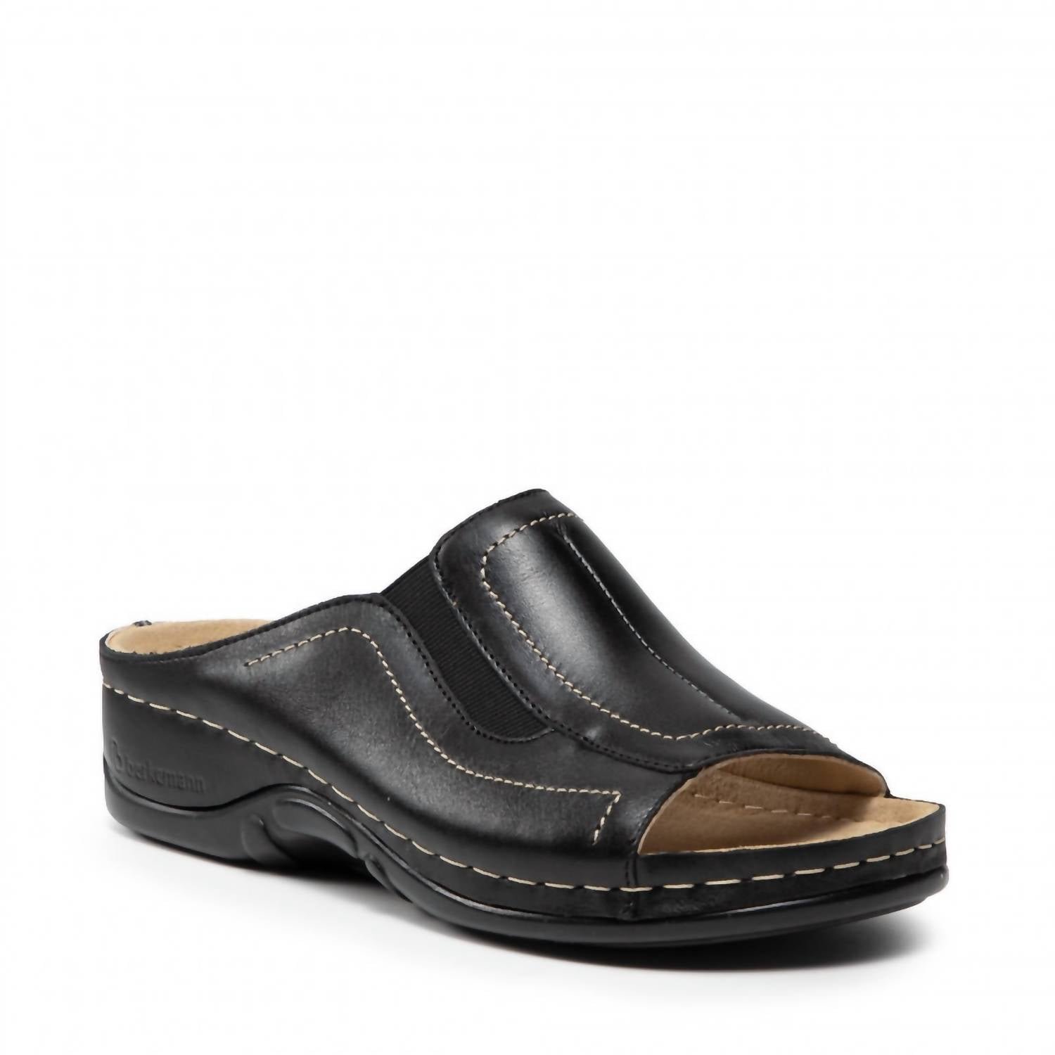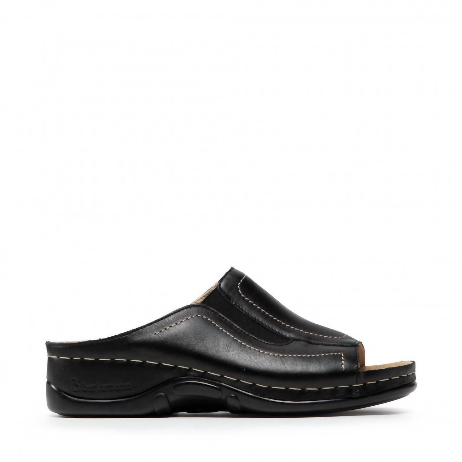 Stylish, comfy, and versatile. We can't find anything wrong with these.Meet the Women's Isabella Mules by Berkemann, perfect for both indoor and outdoor comfort. Made of durable grain leather, these black mules feature a low wedge heel of 1.57 inches and an open toe for a breezy summer style. The design includes a raised inner edge and cup-shaped heel for stability, with a padded insole that cushions and absorbs impact. Ideal for adult women seeking style and support in every step.