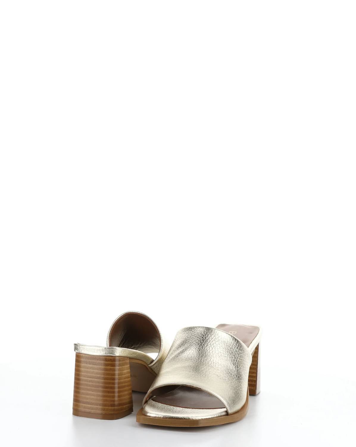 Flowy dresses, cropped pants, and even jumpsuits… this sandal works with them all!Elevate your evening look with the Bryn Slip-on Sandals by Bos. & Co., designed in a chic platino hue. These minimalist sandals feature a squared-off toe and a stacked block heel that measures 2 1/2 inches, offering both style and stability. Crafted with a luxurious leather upper and a synthetic lining and sole, they promise a comfortable stride, further enhanced by a cushioned footbed. Made in Italy, these sandals are a perfect fit for New Year's Eve celebrations and any elegant evening event, embracing the trend of quiet luxury.