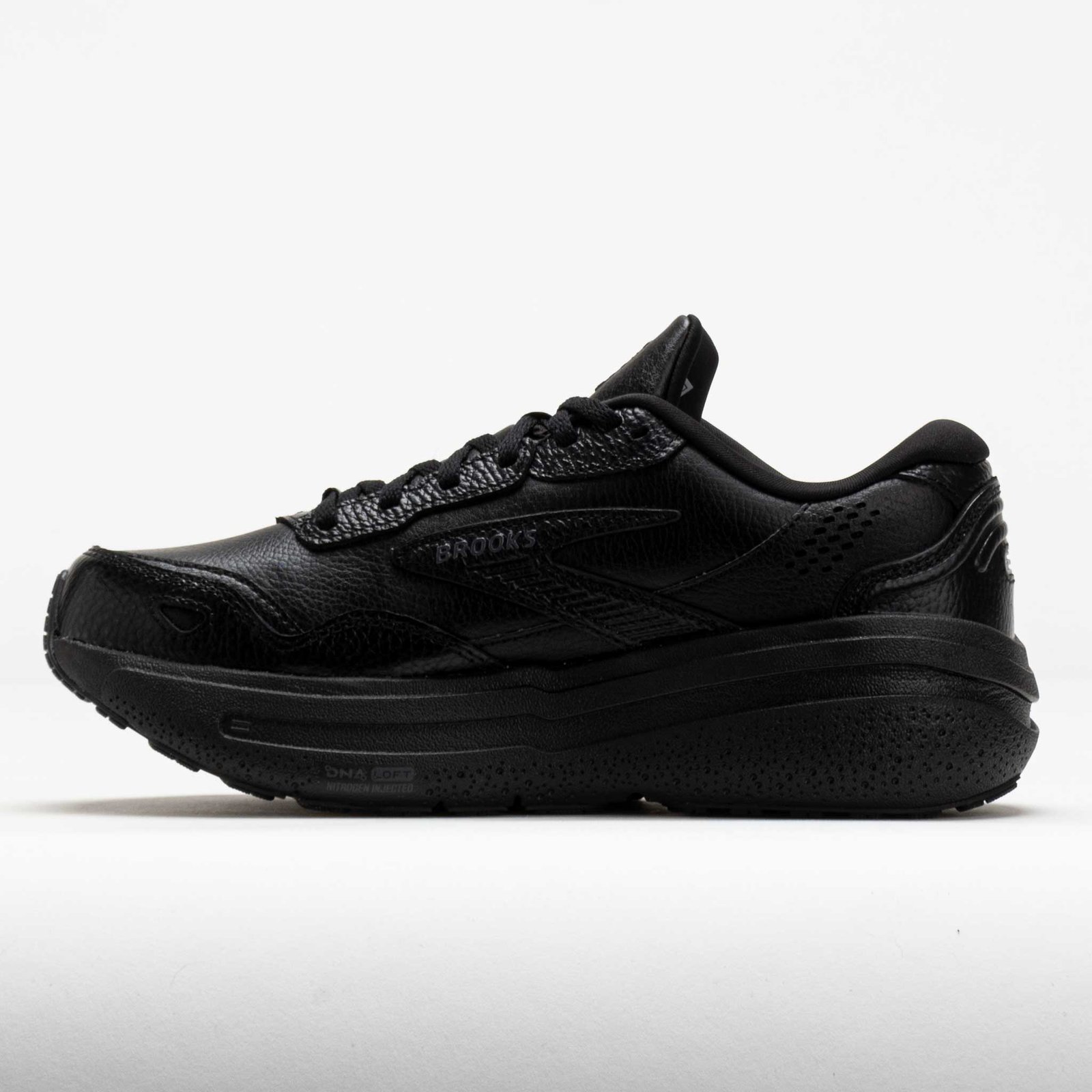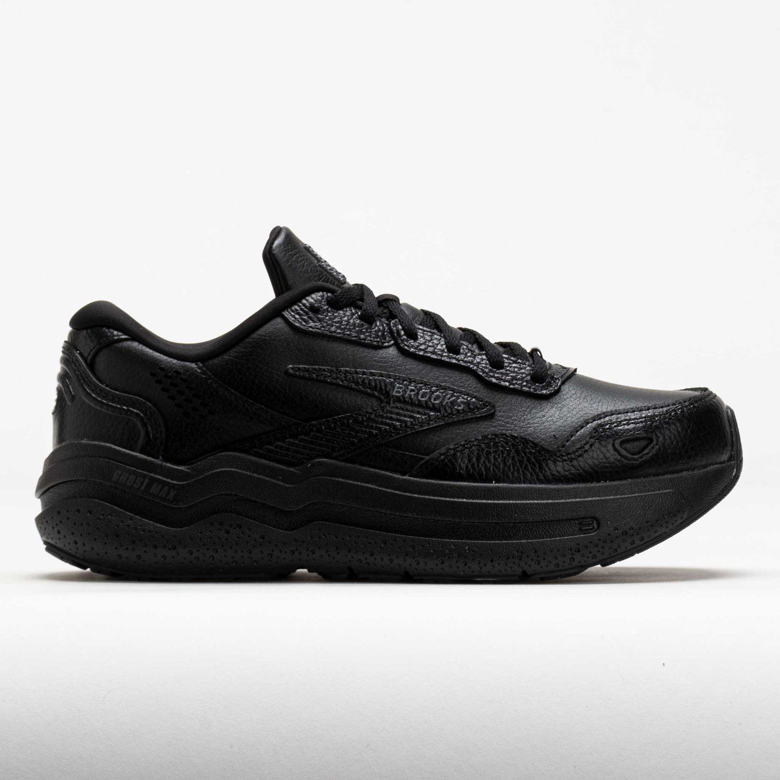Plush cushion meets durable protection in the Brooks Ghost Max Leather! This max-stack walking shoe features a leather upper for everyday comfort. Feel the softness with every stride on the DNA Loft v3 foam midsole. The GlideRoll Rocker design guides smooth and efficient transitions. Smooth, soft and stylish, the Brooks Ghost Max Leather rolls through daily walks!