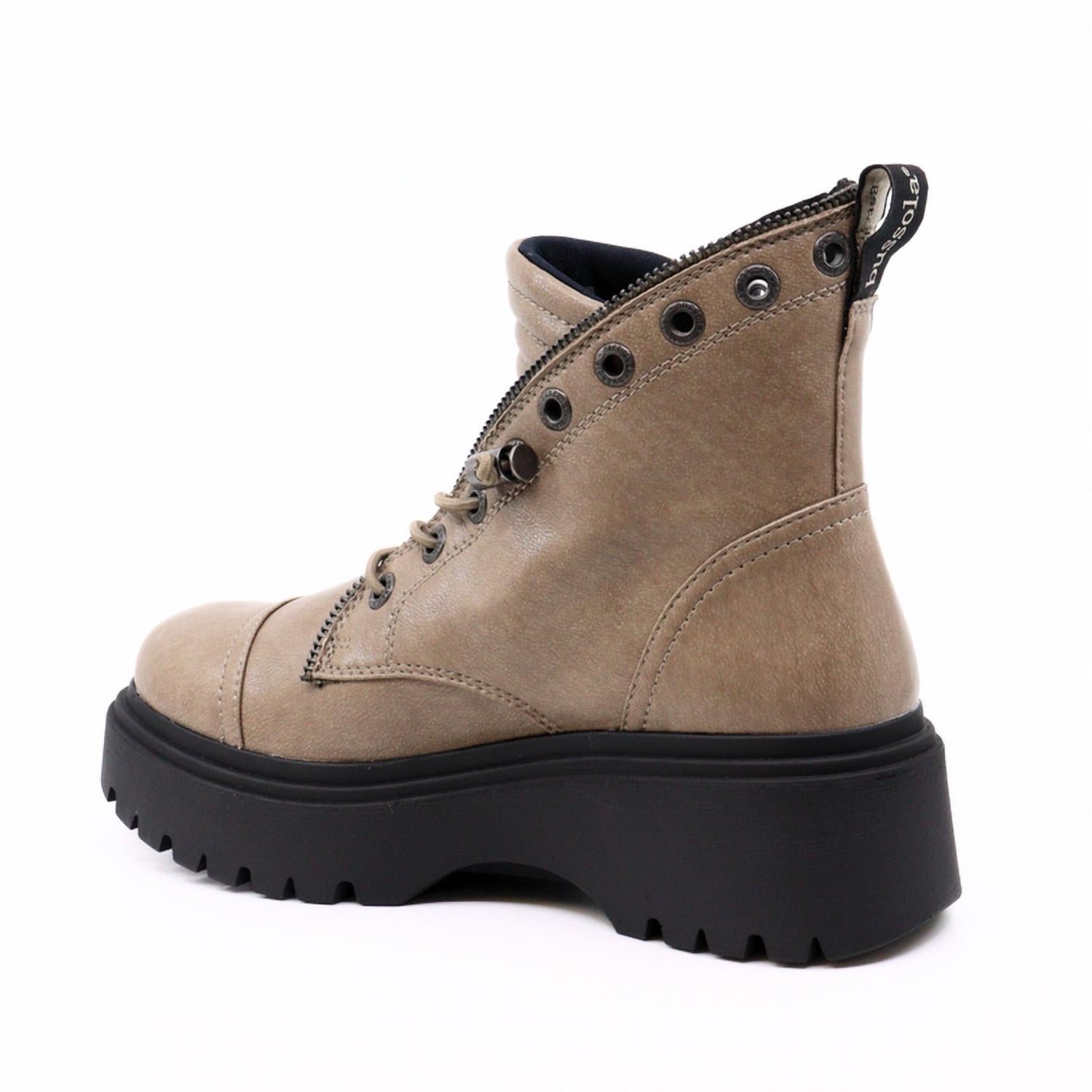 Upgrade your shoe game with these stylish lace-up boots, designed to merge sophistication and comfort. You'll be reaching for these shoes season after season.Elevate your style with the Women's Faye Boots by Bussola, crafted in taupe premium leather for an ultra-soft feel. Featuring a round toe and a mid chunky heel at 2.17′, these lace-up boots are designed with a multi-density, shock-absorbing insole for maximum comfort. The platform height of 1.30′ adds the perfect lift, while the anti-slip rubber sole offers reliable stability. With PU suede lining and moisture-wicking fabric, these boots are a chic choice for any outfit.