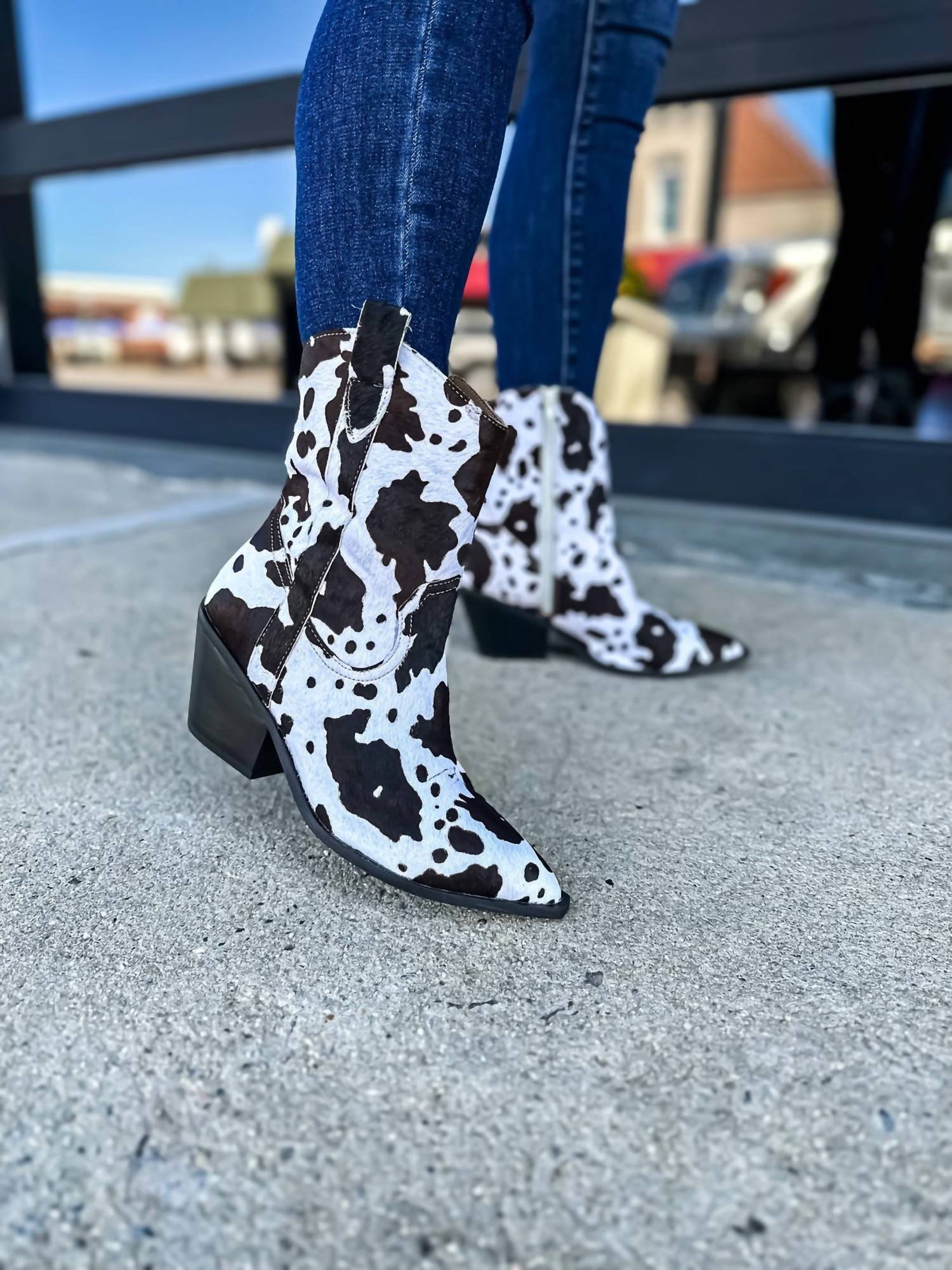Say hello to the perfect, most versatile boot. The ankle height makes this style easily transition from day to night. Wear them with your favorite skinny jeans and tee for a more laid back look, or pair them with your favorite mini dress and jacket for a night out on the town.Introducing the Women's Lainey Ankle Boot by Corkys Footwear, a striking blend of Western flair and modern style. Crafted from leather in a unique Black Cow design, this bootie features a pointed toe and a stylish block heel that stands at 3 inches, making it perfect for a summer holiday party or Thanksgiving gathering. Its mid-height heel ensures comfort while offering a trendy look suitable for any festive occasion. Embrace the spirit of the season with this versatile ankle boot.