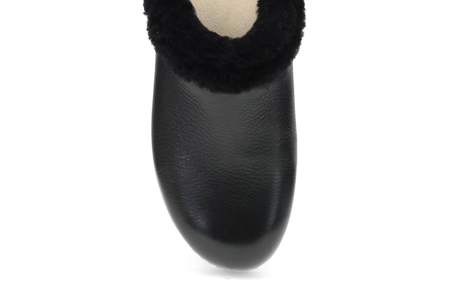 Slip them on and go! Step into luxury and comfort with the Dansko Women's Magda Waxy Milled Black mules, perfect for travel and adding a touch of monochrome style. Crafted from high-quality leathers, these flat heel mules feature a round toe and patented stapled construction for durability. The interior is lined with a combination of soft lining and 100% recycled textiles, offering moisture management and odor control. Elevate your summer wardrobe with these essential mules that boast a dual-density cork/EVA midsole and a lightweight rubber outsole for lasting comfort.
