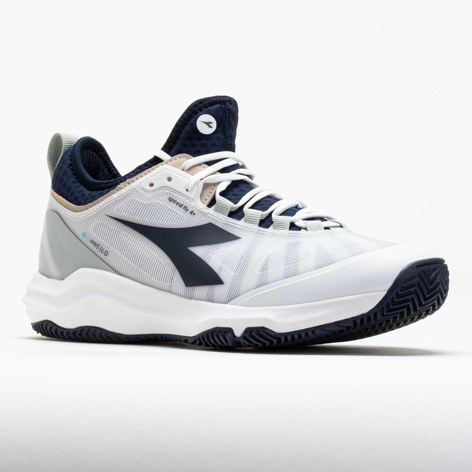 Designed for fleet-footed players. the Diadora Speed Blushield Fly 4+ Clay unleashes your quickness during the match! This lightweight tennis shoe features a sock-like upper with D-Skin technology for support. Blushield technology in the midsole provides a fast feel as you explode toward the next shot. Find your footing on clay courts with the Duratech 5000 rubber outsole. Soft and responsive. the Diadora Speed Blushield Fly 4+ Clay provides the speed to reach any shot!