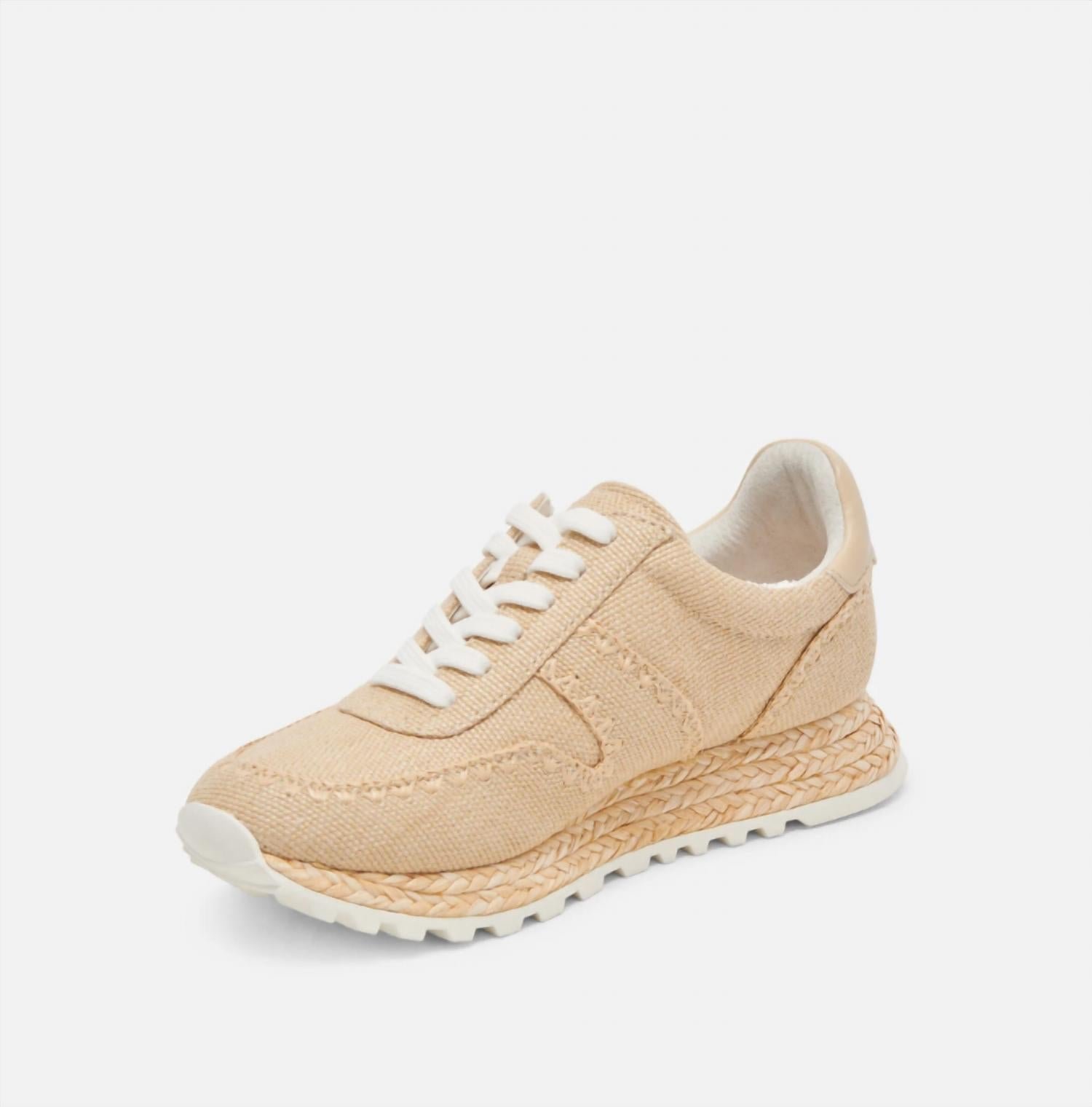 Cute, functional, and comfortable. These sneakers check all the boxes.These shoes feature a synthetic raffia and leather upper, a rubber outsole, a textile lining, and a synthetic sock. The heel height is 1.3 inches. Imported.