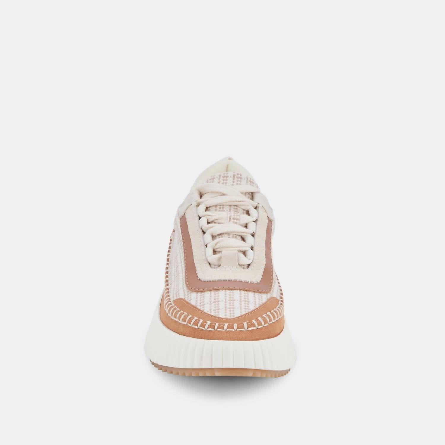 Get your daily steps in with these adorable sneakers.Meet the Women's Dolen Sneakers by Dolce Vita, a stylish blend of comfort and modern design in a chic Brown Multi hue. These sneakers feature a unique combination of suede and woven knit uppers, complemented by a sporty and supportive lace-up closure. The 1.6′ platform wedge heel adds a contemporary edge to your look while maintaining all-day comfort. Crafted with a rubber outsole, textile lining, and synthetic sock, these sneakers are ready to elevate any casual ensemble. Imported.