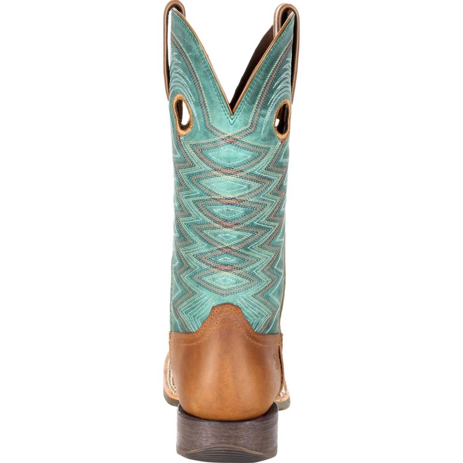 Upgrade your shoe game with these classic heeled boots, designed to merge sophistication and style. Comfortable enough for long days or a night out on the town.Discover the Women's Lady Rebel Pro Cowgirl Boot by Durango Boots, a stylish choice in TAN/TEAL for modern cowgirls. Crafted from full-grain leather, these boots feature a striking square toe and a supportive cushion flex insole with a rigid rear foot stabilizer. They boast 3/4 genuine Goodyear? welt construction combined with a genuine leather welt and double row cotton stitch for added durability. The 1 1/4′ Rocker heel ensures comfort and stability, while the soft mesh lining provides a comfortable fit. They weigh 1.05 lbs for size 8M with a calf circumference of 14 inches.