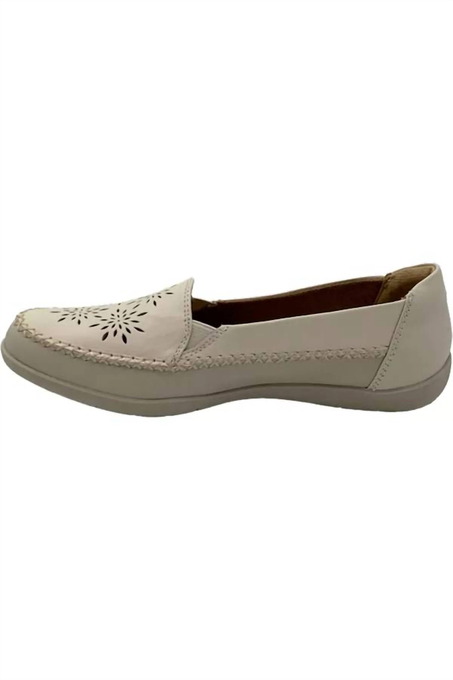 A preppy yet feminine take on the classic loafer.Step out in style with the Women's Freya Shoes by EARTH, perfectly crafted for modern women seeking comfort and elegance. Made with a manmade upper material in a solid sand white color, these flats feature a slip-on style and a round toe design. Ideal for casual outings, the flat heel ensures all-day comfort without compromising on style. The sophisticated leather construction adds a touch of luxe to your wardrobe essentials.