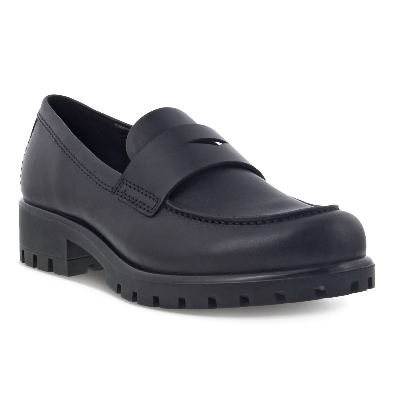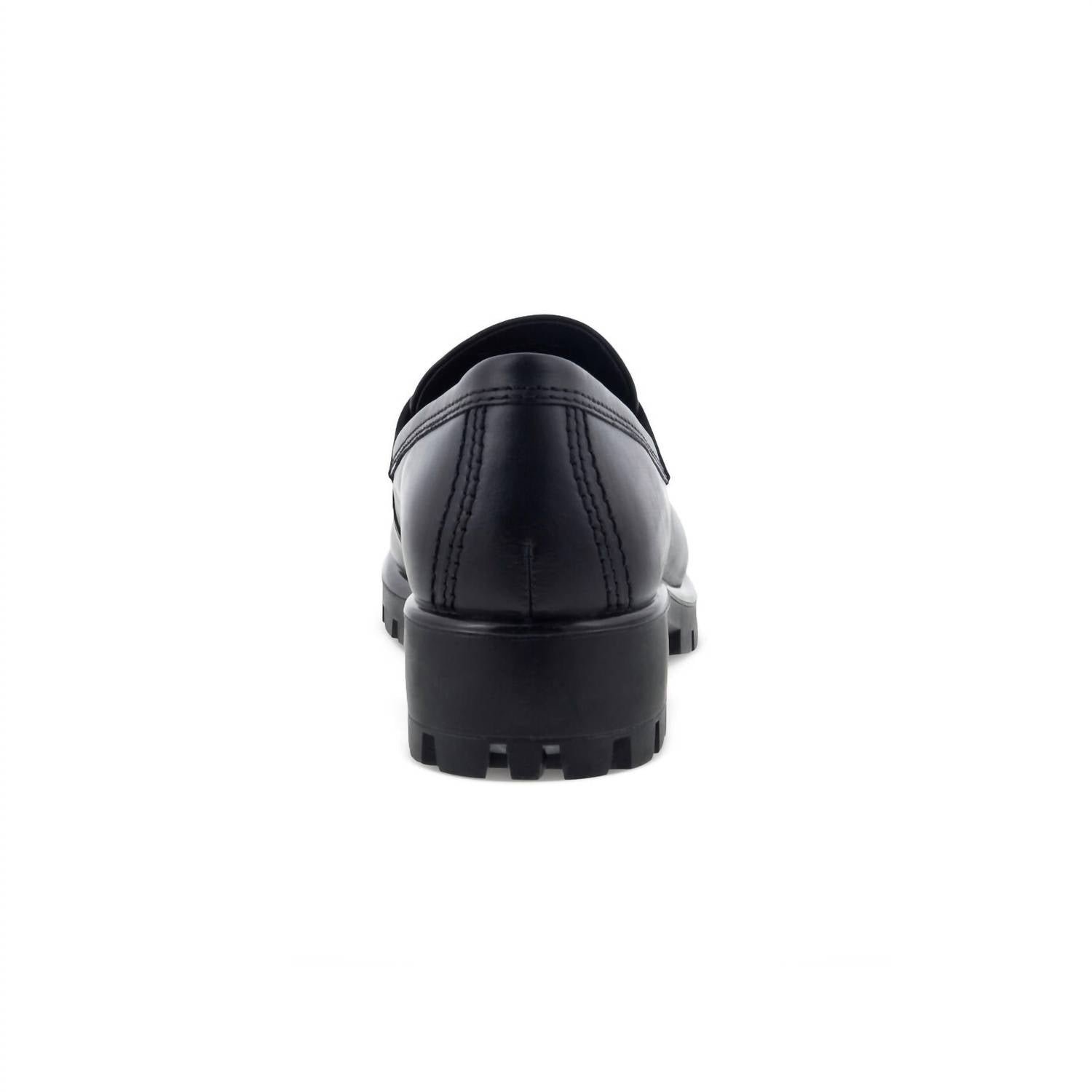 A classic loafer that is both comfortable and polished.ECCO's Women's Mod Tray Loafer in Black is a sophisticated workwear staple combining edgy moc-toe styling with cutting-edge technology. Crafted from smooth, full-grain leather, these loafers feature a lightweight lugged sole for added cushioning and flexibility courtesy of ECCO FLUIDFORM? Direct Comfort Technology. This versatile shoe is lined in leather and textile for a luxurious yet breathable experience, and its rubber outsole ensures stability with ECCO TRAYTECH? Technology. Ideal for travel or everyday office wear, this round toe loafer boasts a polished midsole and removable molded leather inlay sole.