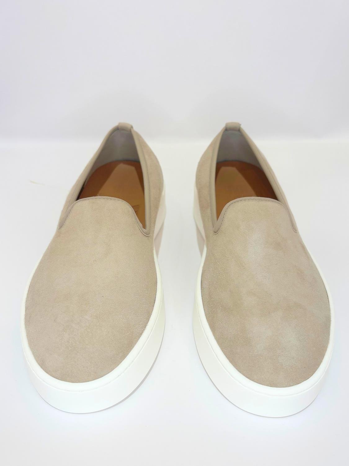 A preppy yet feminine take on the classic loafer.Step into timeless elegance with Fabiano Ricci's Women's Roma Stretch Loafers in a chic beige hue. Crafted from premium suede, these Italian loafers offer a luxurious feel and a comfortable fit. Featuring a round toe and flat heel, they effortlessly blend style with practicality, perfect for the summer season. We suggest using a shoe horn initially, as these loafers will gradually mold to your feet.