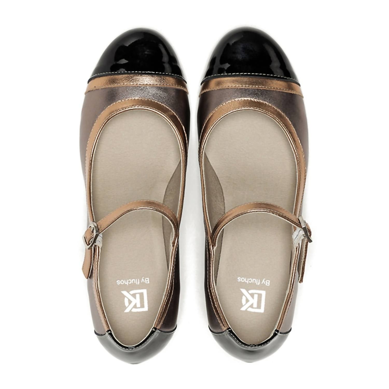Don't be deceived, these heels are comfy as can be.Discover the Fluchos Women's Frida Heeled Mary Jane Shoes, designed for both comfort and style. Crafted from luxurious leather in a distinctive Lamin Marmota color, these shoes feature a breathable microfiber textile lining and insole to keep your feet cool. The round toe and block heel with a unique geometric pattern offer a playful touch, with a heel height of 1.7′. Perfect for any occasion, these are low-maintenance, sophisticated heels you'll love.