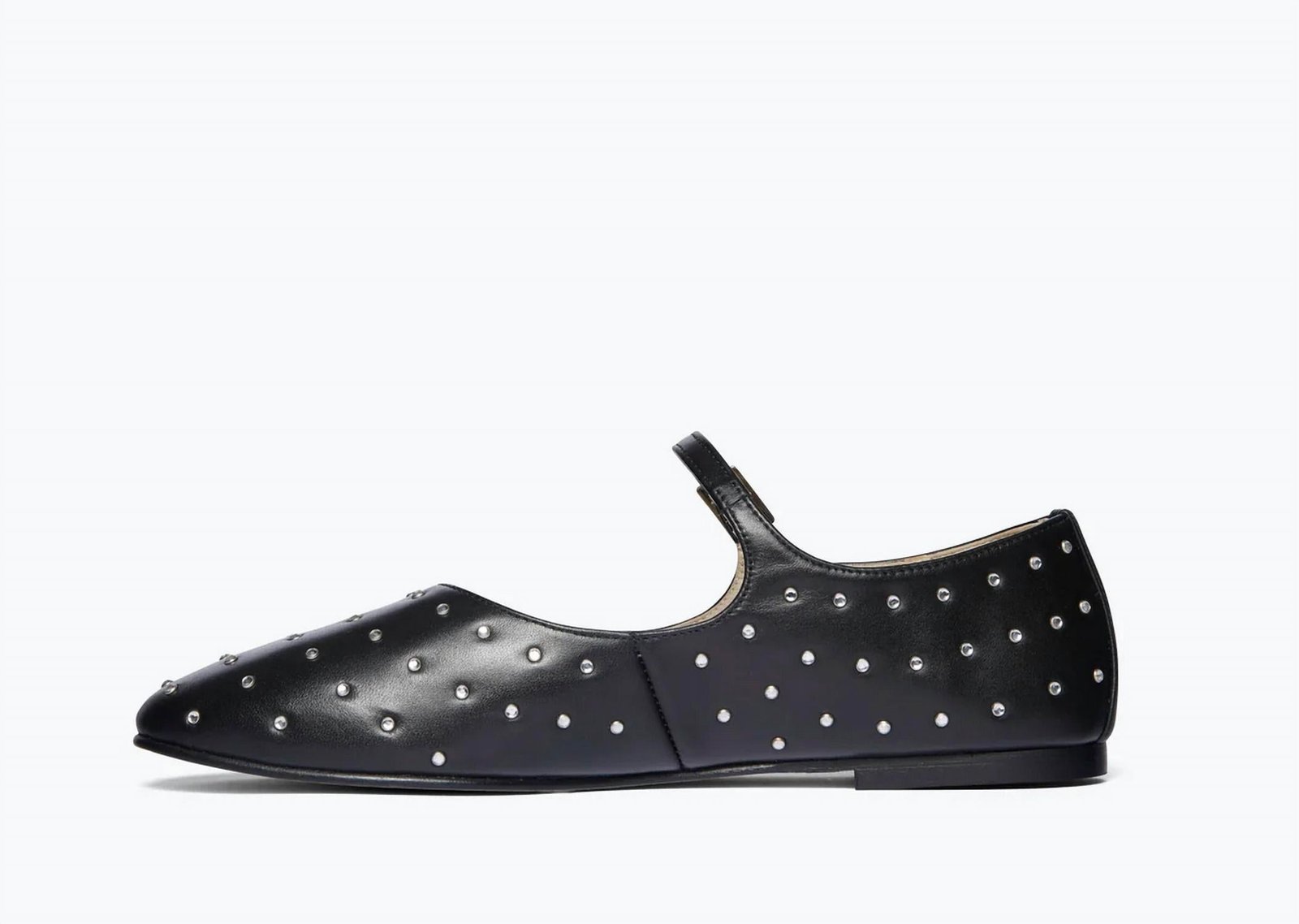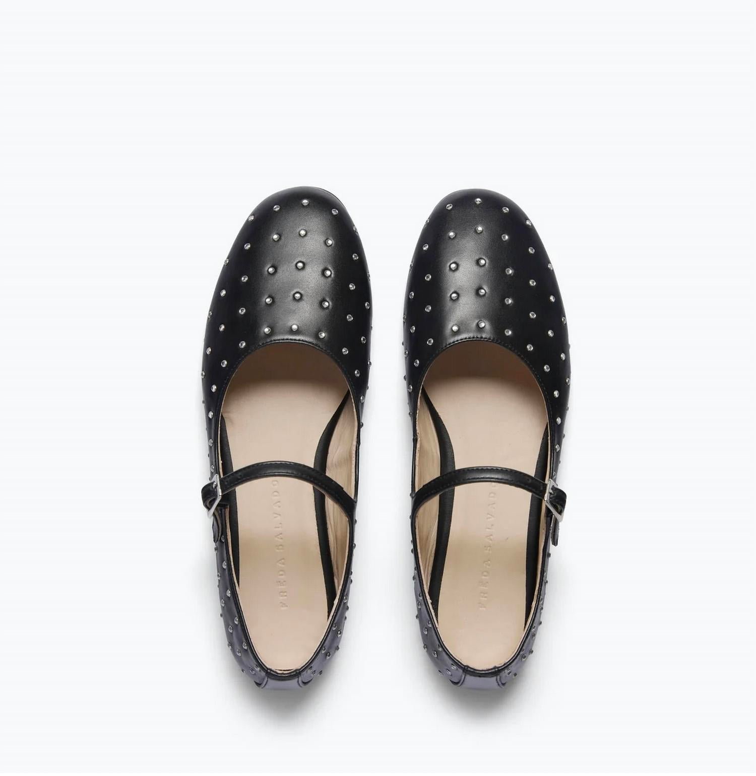 Loafers so versatile you can wear them with just about anything.Step into elegance with the Women's Aubrey Mary Jane Flat Shoes by FREDA SALVADOR, meticulously handcrafted in Spain. These flats boast a 100% Italian Leather composition featuring a padded leather footbed and a beveled leather sole, complemented by a 0.25′ rubber heel for all-day comfort. Perfect for holiday parties, the round toe design exudes quiet luxury and sophistication. Adorned with black calf leather and crystals, these timeless flats are an essential for seamless day-to-night wear.