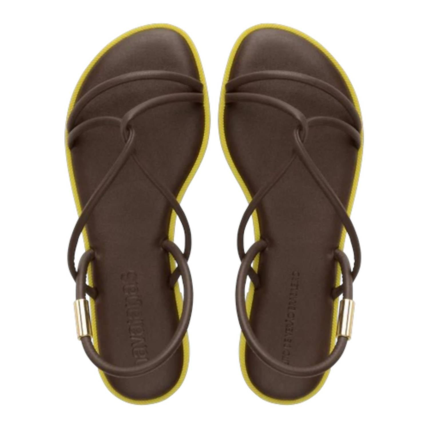 This sandal will take you from brunch to dinner and everything in between.Step into elegance and style with the Havaianas Women's Una Manga Sandals in dark brown, ideal for a chic summer look. These minimalist sandals feature an open toe with thin fabric straps and a metal adjustment, ensuring both style and support. The craftsmanship includes a blend of laminate, polyester, and polyamide materials, complemented by a foam sole for all-day comfort. Made in Brazil, these flats are perfect for beach days, offering a touch of elegance to your casual ensemble.