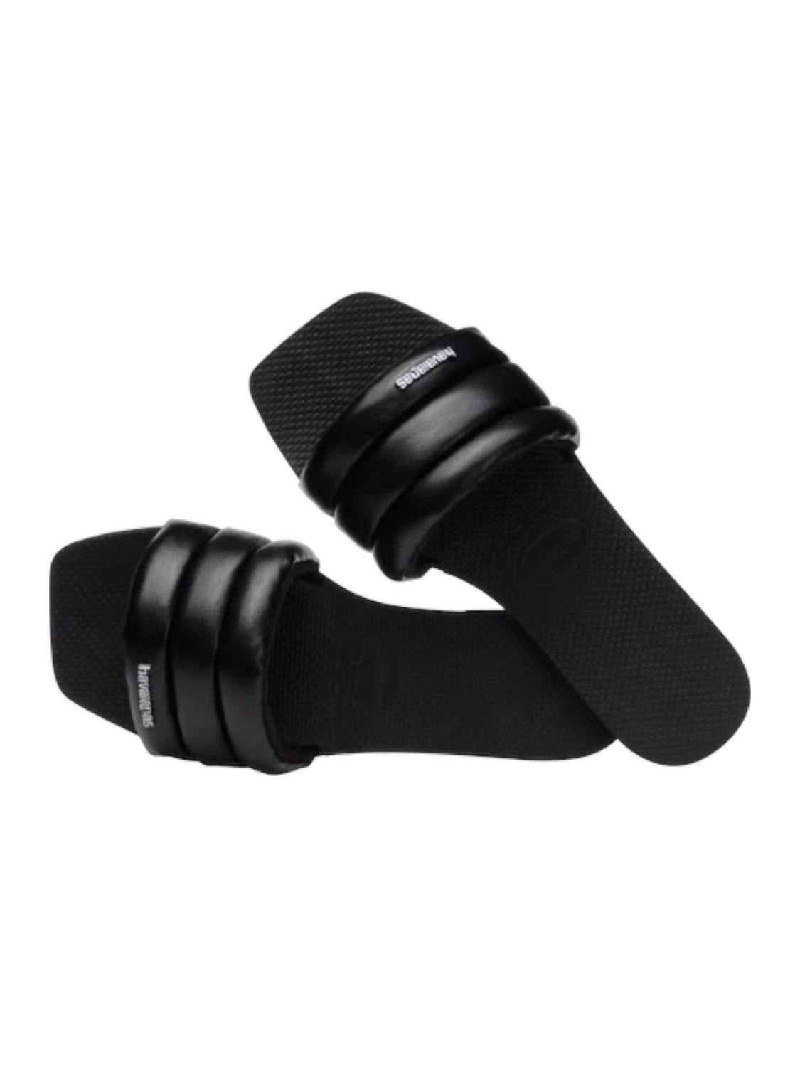 This sandal will take you from brunch to dinner and everything in between.Step into simplicity with the Havaianas Women's You Milan Slide Sandals, a chic nod to Milanese fashion. Designed with a square open toe and single strap slide, these sandals boast a padded upper and signature textured footbed for all-day comfort. Crafted from premium Brazilian rubber and finished with a metallic Havaianas logo, they're perfect for a minimalist beach day look. Composition: 100% rubber. Origin: Made in Brazil.