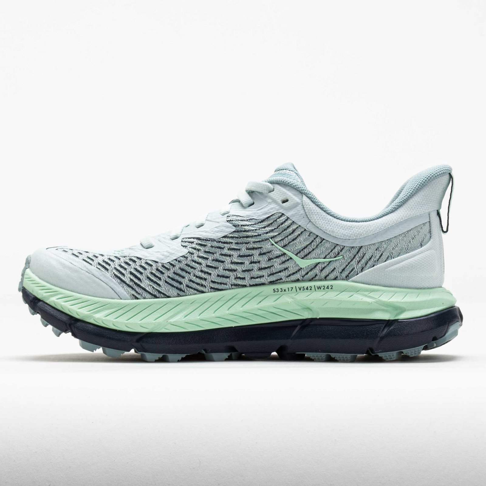 Enjoy a responsive ride on rugged terrain in the Hoka Mafate Speed 4! This sturdy trail shoe thrives on uneven surfaces. providing durable protection with every stride. Slide into a breathable. single-layer jacquard mesh upper and enjoy foot-hugging comfort. The dual-layer PROFLY?+ midsole delivers soft landings and explosive lift-offs. Aggressive Vibram? MegaGrip lugs provide reliable traction and smooth landings on uneven terrain. If you're looking to take your trail runs to new heights. try the Hoka Mafate Speed 4!