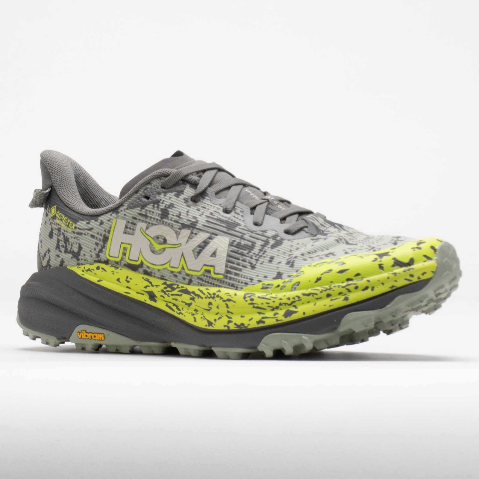 Tame the trail in the HOKA Speedgoat 6 GTX! This ultralight trailblazer blends soft cushioning with aggressive traction for a grippy and responsive ride. Blaze technical terrain under the energetic and stable CMEVA midsole. The Vibram Megagrip outsole provides confident footing on any surface. With a hoof-inspired lug pattern. the HOKA Speedgoat 6 GTX is a workhorse in wet and sloppy conditions!