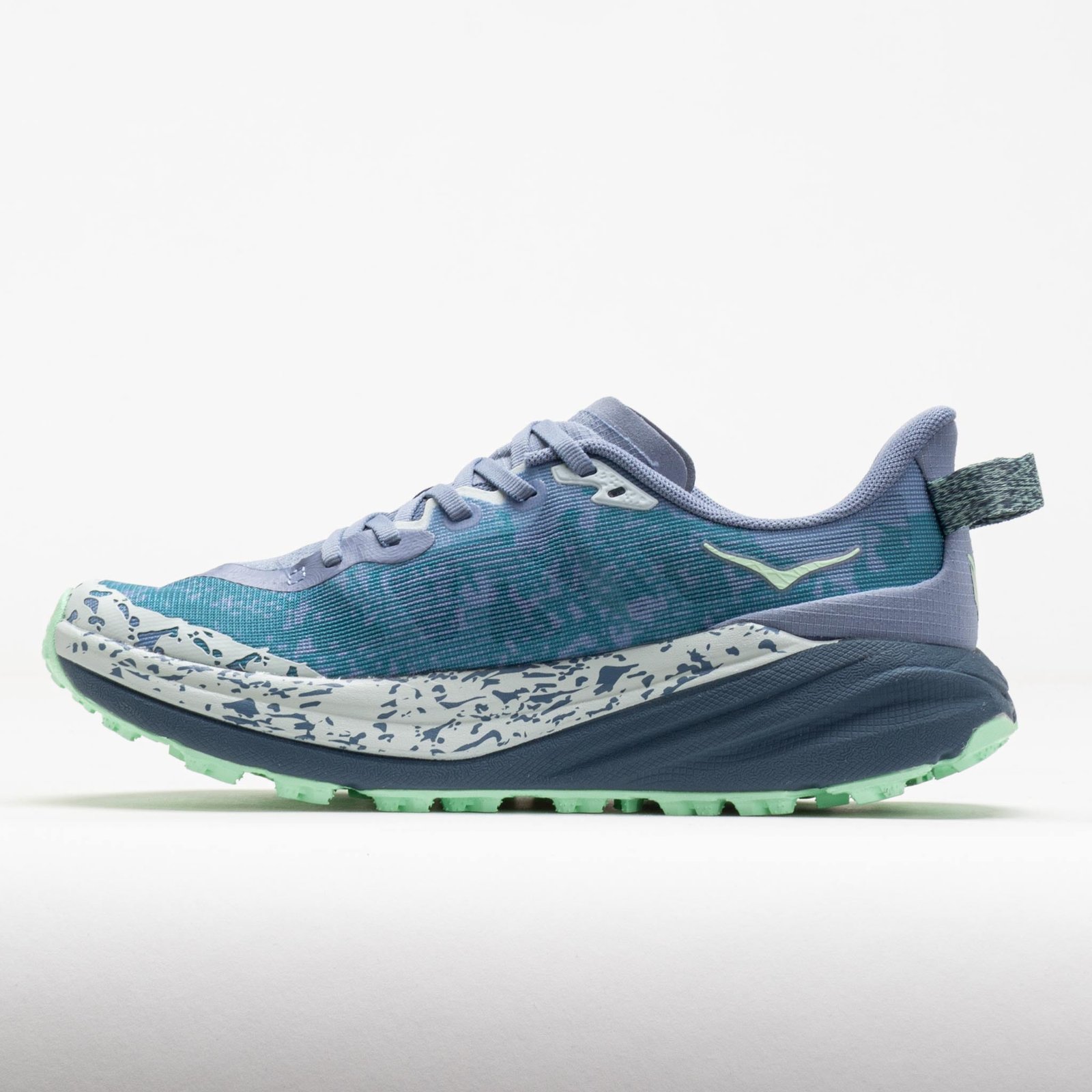 Tame the trail in the HOKA Speedgoat 6! This ultralight trailblazer combines soft cushioning with aggressive traction for off-road surfaces. Blaze technical terrain under the energetic and stable CMEVA midsole. The Vibram Megagrip outsole provides confident footing on any surface. With a hoof-inspired lug design. the HOKA Speedgoat 6 proves there's only one GOAT on the trail. And this is it!