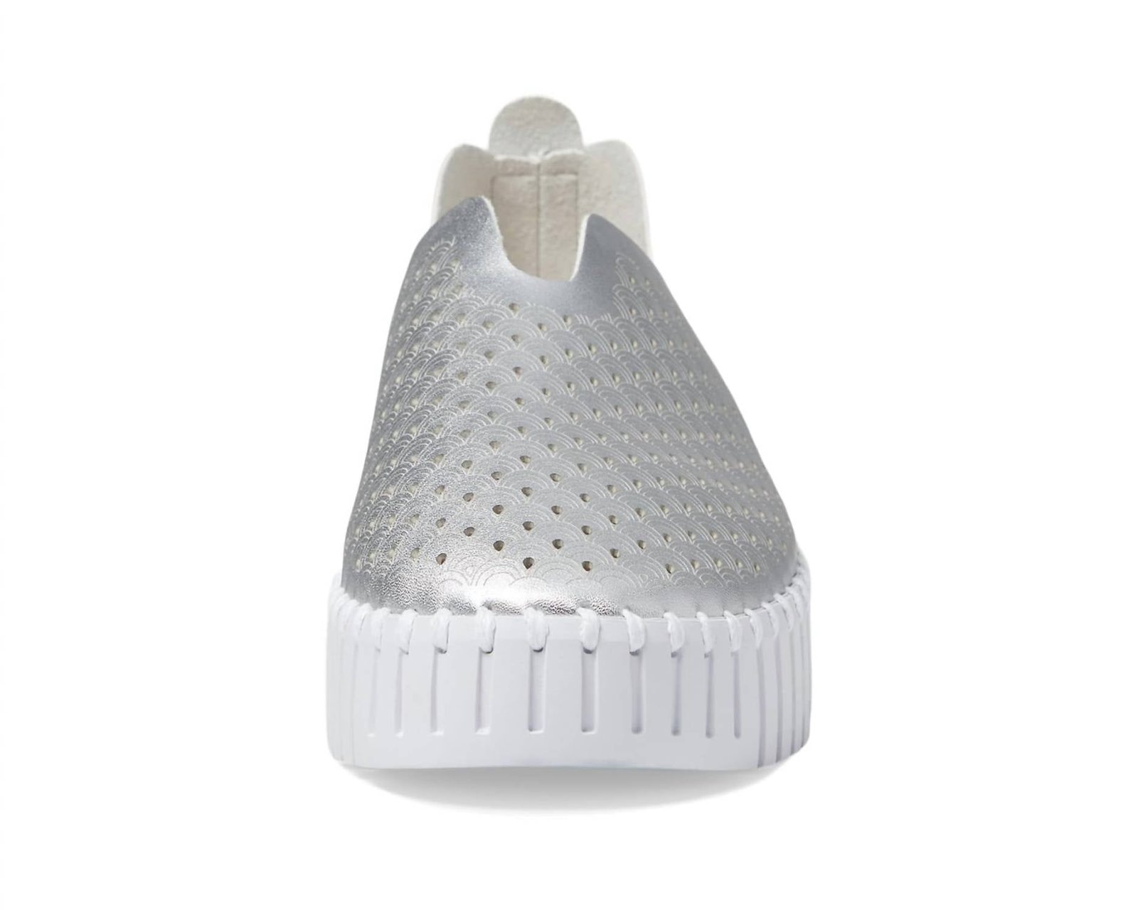 Cute, functional, and comfortable. These sneakers check all the boxes.Step into style with the Ilse Jacobsen Women's Tulipu 0010 Shoes, epitomizing quiet luxury in sleek silver. These flats feature a flat heel and a laser-cut recycled microfiber upper adorned with scalloped details, ensuring elegance and sustainability. The soft synthetic lining and removable leather footbed enhance comfort, perfect for travel or any fall occasion. Ideal for the fashion-forward woman seeking both style and conscience, these slip-ons are a standout choice.