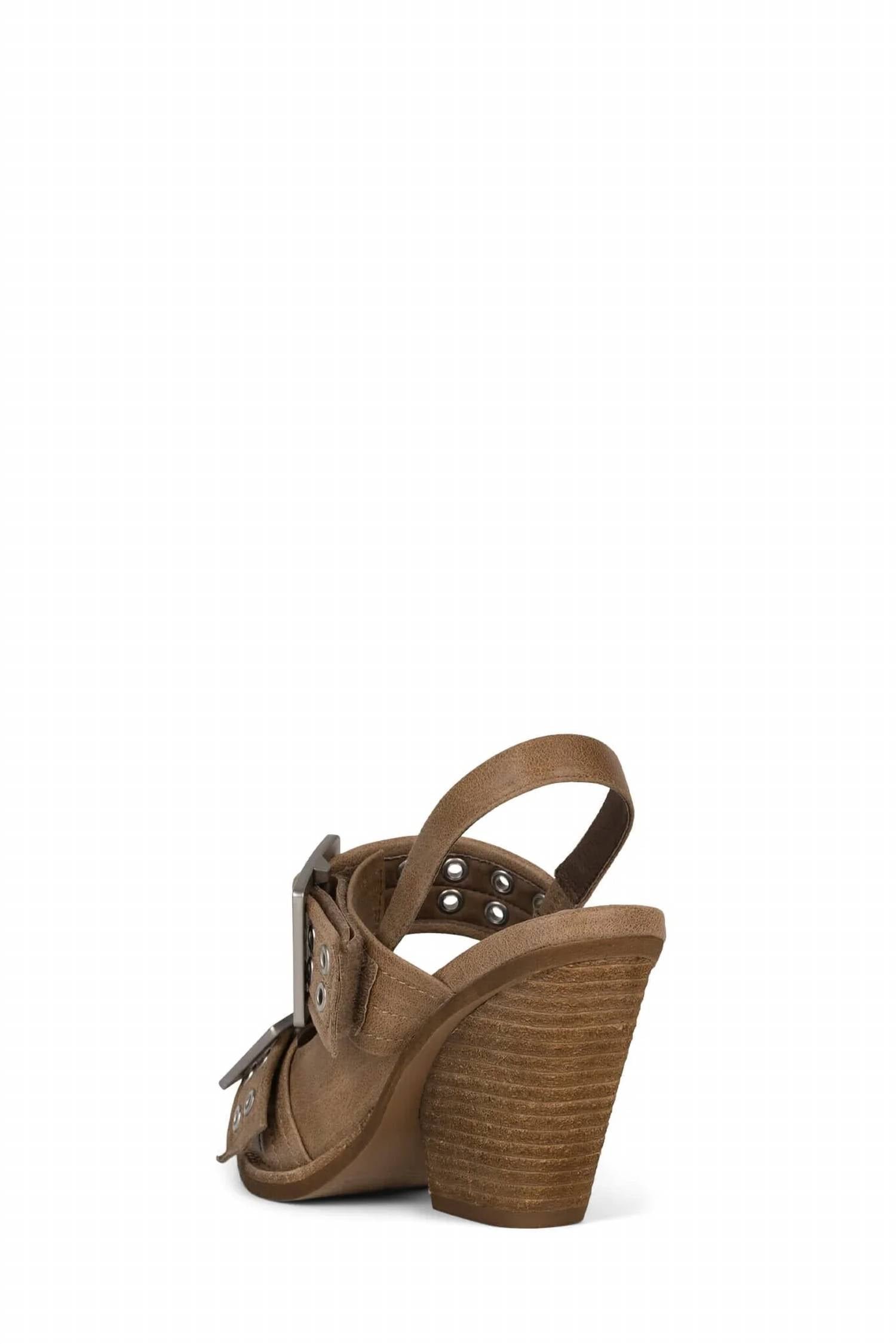 Don't be deceived, these heels are comfy as can be.Step up your style in chic boot/heel hybrid in a versatile tan hue. Feature a pointed toe and a western-inspired design with a slingback upper and double buckle straps. Perfectly complimented by a tan stacked block heel. Crafted with a synthetic upper and leather/synthetic lining. Boast a comfortable 3.5′ heel and a 0.25′ platform for added height. Velcro closure ensures a snug fit. Fit true to size.