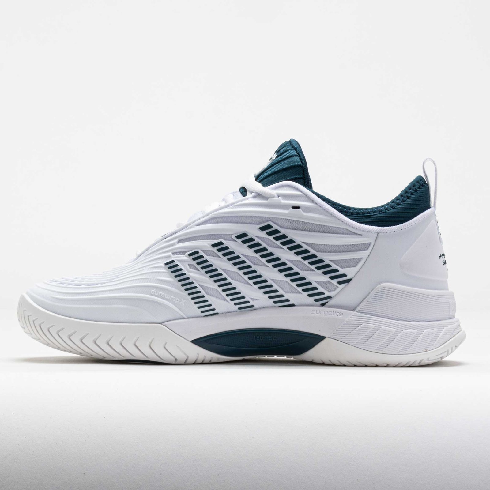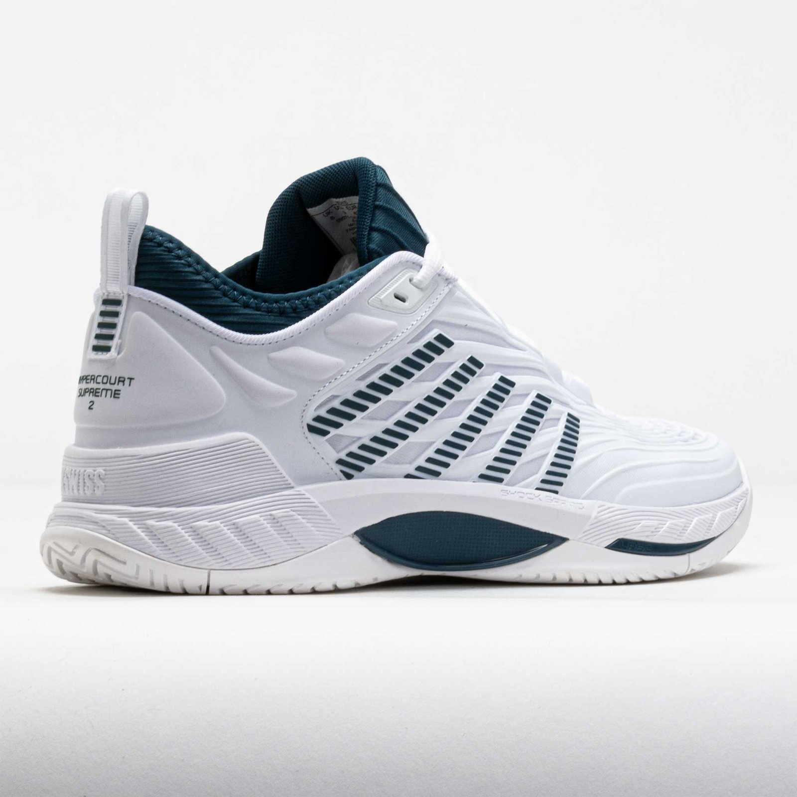Reach your potential in the K-Swiss Hypercourt Supreme 2! This tennis shoe keeps you comfortable with extra durability. improved support and a more secure fit. Stay protected while sprinting around the court in the Durawrap X upper. The dual-density midsole features a lightweight Surgelite top layer and a Shock Spring top layer for quick reactions. Enjoy traction and durability on any surface under the DragGuard 7.0 rubber outsole. Soft. light and responsive. the K-Swiss Hypercourt Supreme 2 brings you to the ball faster!