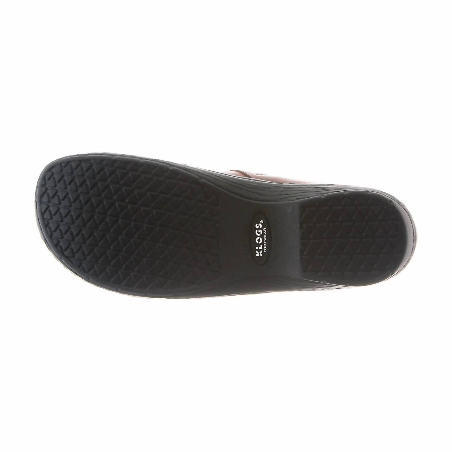 A trend that everyone is loving and this style might just be our favorite.Discover the Women's Mission Clog by Klogs Footwear, a popular choice for healthcare professionals seeking comfort and durability. Crafted from full-grain leather in striking Infield Chaos, this clog is designed with a roomy round toe and flat heel measuring under 1 inch. The TRUBase? Outsoles, featuring exclusive PURGrip? technology, offer slip-resistant stability on wet or oily surfaces, while the polyurethane TRUComfort? Insoles provide latex-free cushioning to alleviate foot, back, and leg pain. Enjoy all-day support with a wide fit and lightweight feel designed for long shifts.
