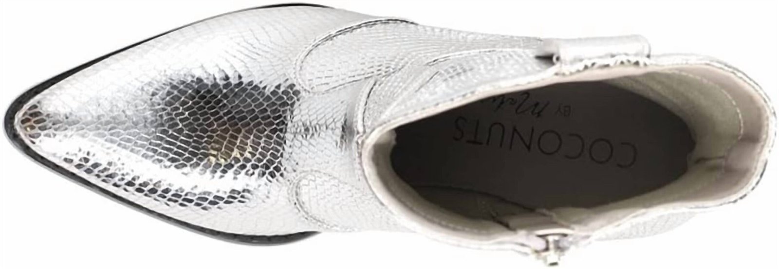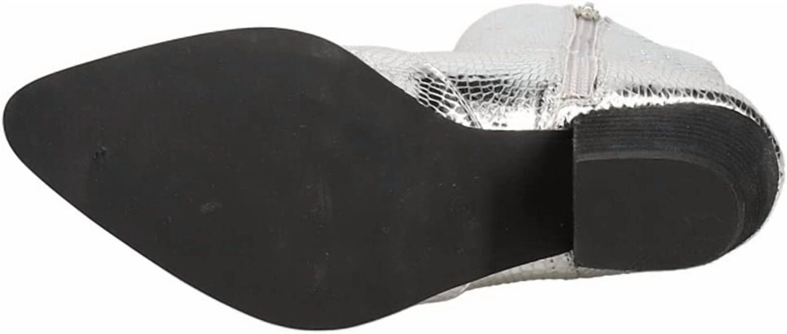 Say hello to the perfect, most versatile boot. The ankle height makes this style easily transition from day to night. Wear them with your favorite skinny jeans and tee for a more laid back look, or pair them with your favorite mini dress and jacket for a night out on the town.Introducing the Women's Bambi Western Boots by Matisse, a chic fusion of modern style with a Western flair in Silver Snake. These boots feature a synthetic leather upper and a manmade outsole, with a sturdy 2.5-inch block heel for a comfortable lift. With a shaft height of 7.75 inches and a topline circumference of 11.5 inches, they offer a sleek fit. Closure: Zipper closure. Made with a textile lining and padded insole, these boots are imported and perfect for adding an exotic edge to your look.