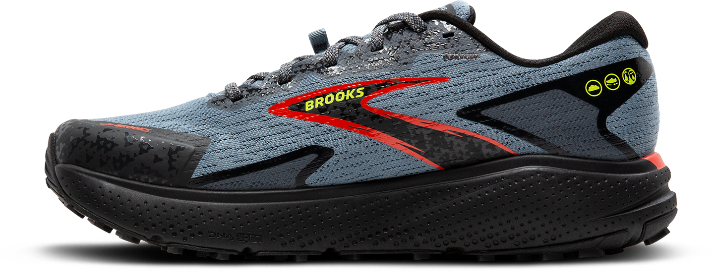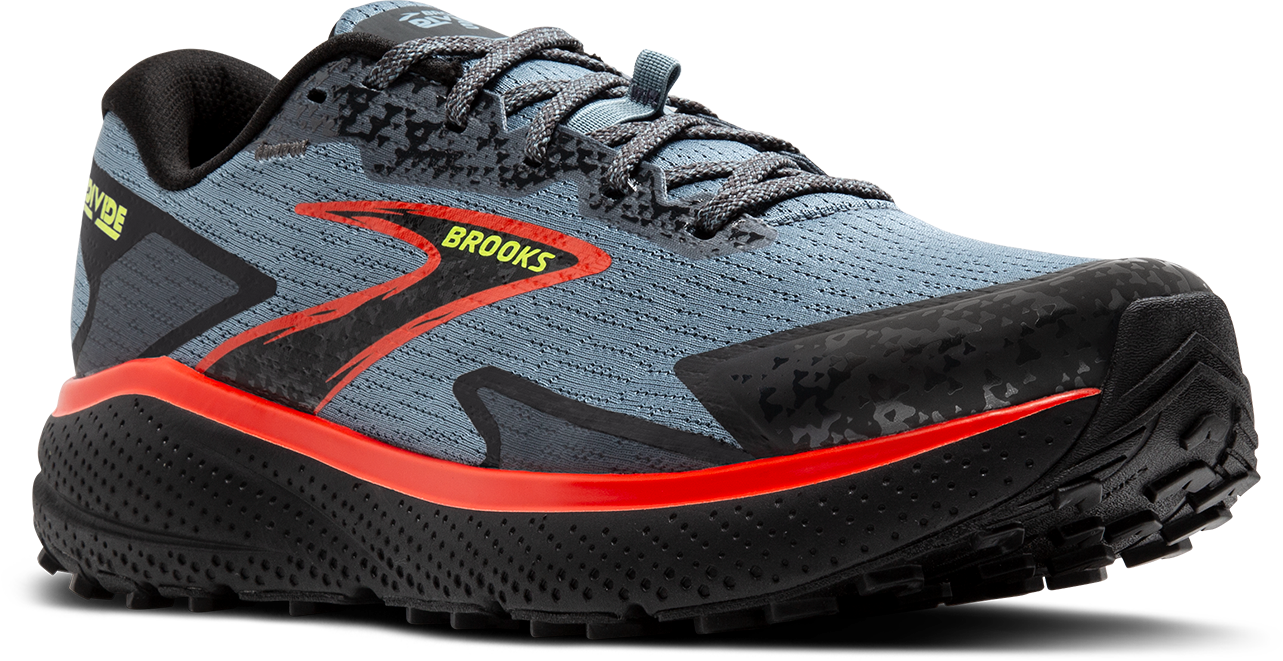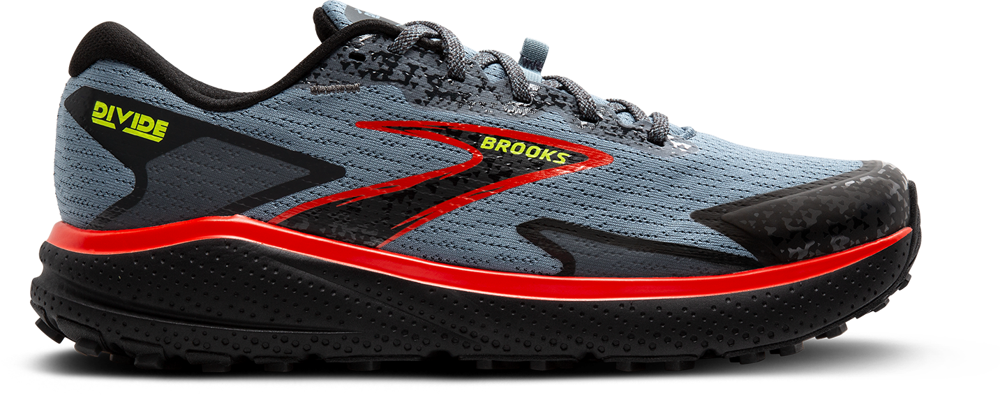 Looking for a running shoe that can handle both roads and light trails? The men's Divide 5 trail shoes fits the bill. This shoe combines soft cushioning with sticky traction and a familiar road-shoe fit to help you transition easily from road to trail and back again.