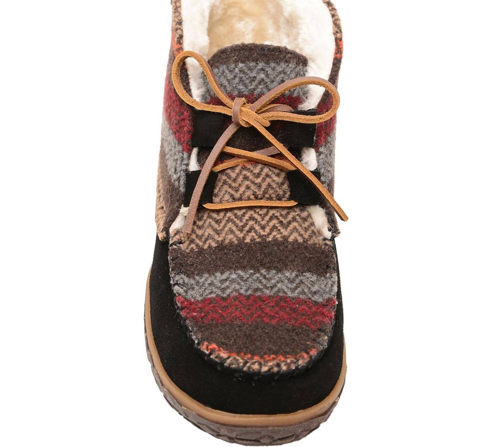 Say hello to the perfect, most versatile boot. The ankle height makes this style easily transition from day to night. Wear them with your favorite skinny jeans and tee for a more laid back look, or pair them with your favorite mini dress and jacket for a night out on the town.Step into comfort and style with the Minnetonka Women's Torrey Suede Slippers in Black/Multi, perfect for boho-chic fall travels or cozy Thanksgiving festivities. These ankle booties boast a suede upper with a blanket material accent, offering a warm pile lining for ultimate comfort. Featuring a removable contoured footbed and a heavily treaded rubber sole, these boots ensure great traction and adaptability for both indoor and outdoor use. Closure is secured with a rawhide lace, and they are imported for assured quality.