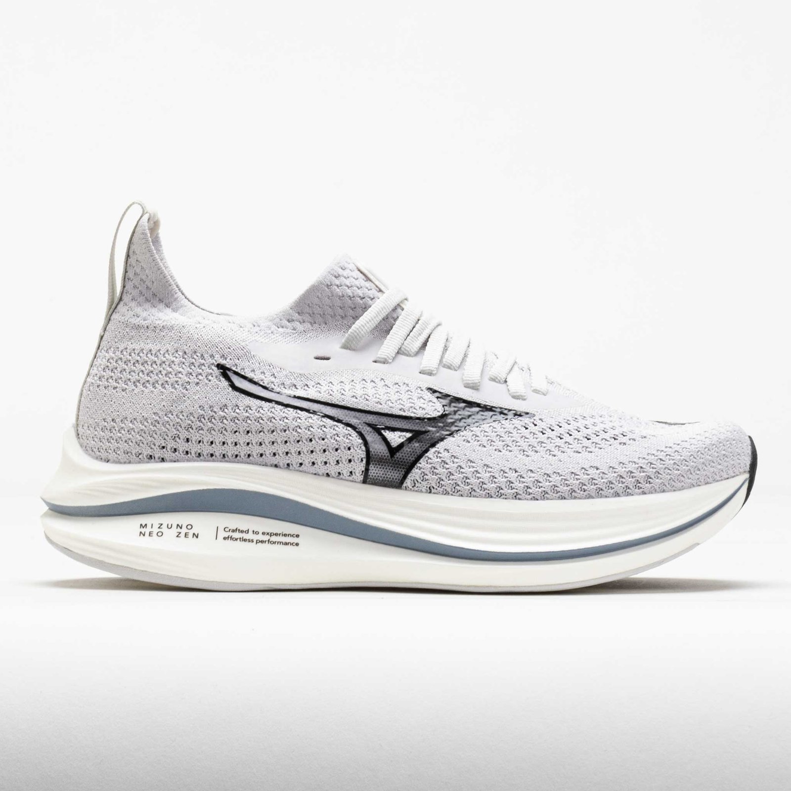 Feel the art of bounce in the Mizuno Neo Zen! This neutral running shoe blends energetic cushioning with eco-friendly materials for a sustainably smooth ride. Get a sock-like fit in the soft knit upper that adjusts to your foot while you move. MIZUNO ENERZY NXT in the midsole provides soft and responsive landings. while SMOOTH SPEED ASSIST geometry aids smooth transitions. Soft. light and responsive. the Mizuno Zen lets you get lost in the miles!