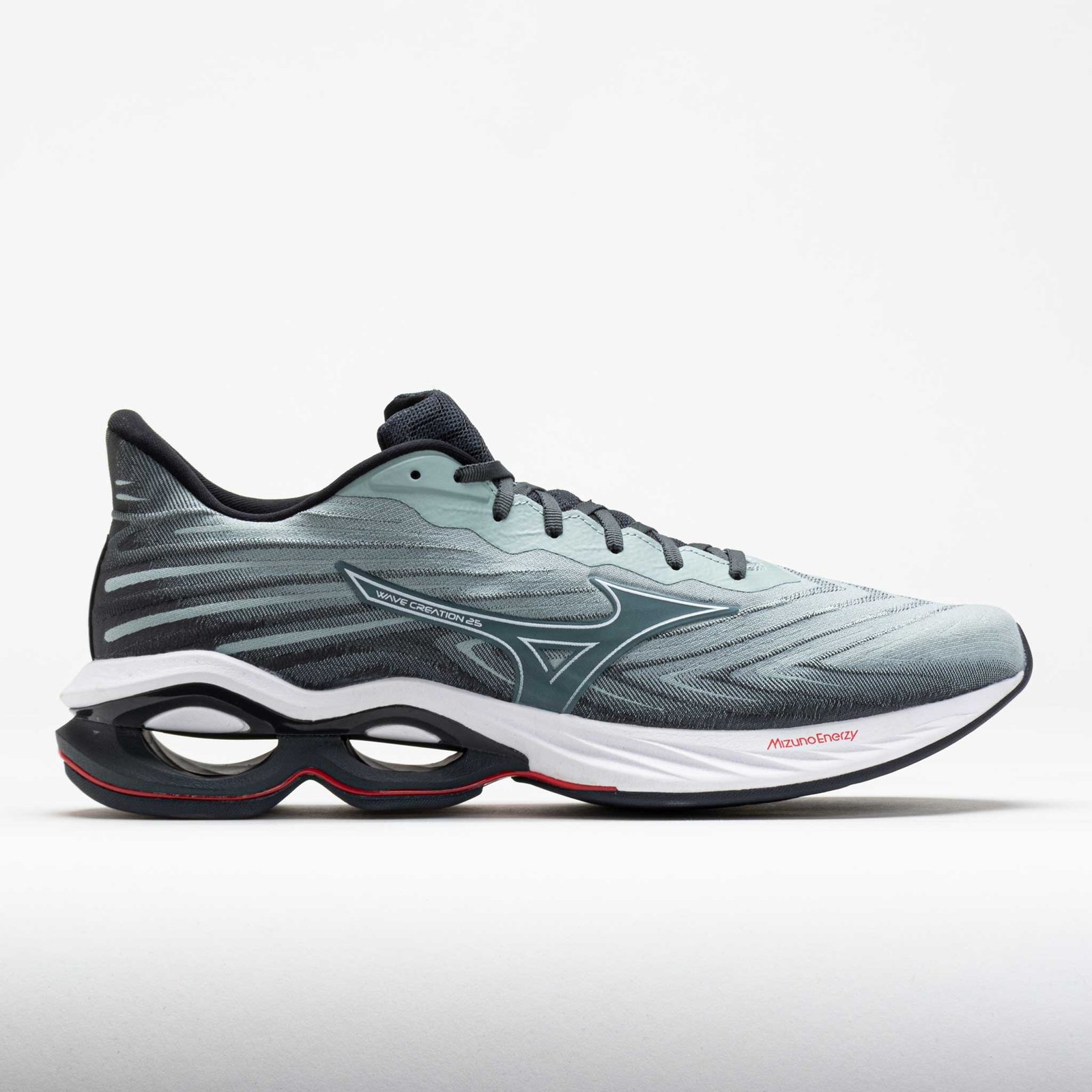 Get maximum cushioning for long distances in the Mizuno Wave Creation 25! Designed to go beyond your boundaries. this neutral running shoe features Infinity Wave technology at the heel for softness and stability. Slide into a smooth stretch woven upper to stay cool and secure while you cruise through the miles. MIZUNO ENERZY foam throughout the midsole adds a soft and energetic feel to every stride. Celebrating its 25th generation. the Mizuno Wave Creation 25 makes every mile a masterpiece!