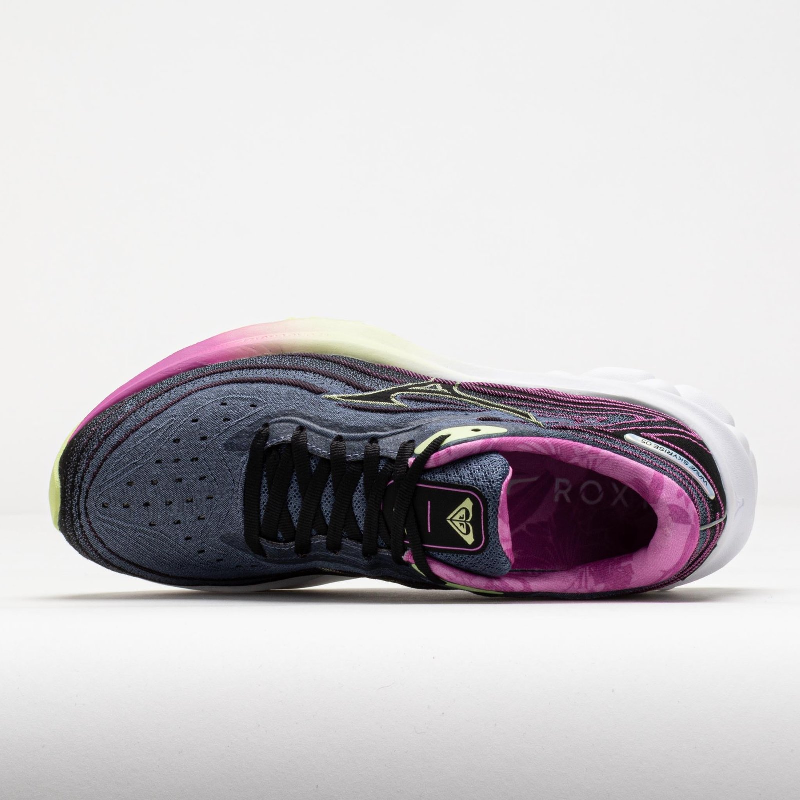 Rise to any occasion in the Mizuno Wave Skyrise 5 Roxy! Created in collaboration with the women's lifestyle brand ROXY. this neutral running shoe empowers you to go the distance. Enjoy lightweight comfort and a secure fit in the Smooth Stretch Woven upper. Feel a soft and responsive ride on the MIZUNO ENERZY midsole. The dual-layer Foam Wave features a U4icX top layer and Mizuno Enerzy bottom layer for extra comfort and support. Smooth. soft and stable. the Mizuno Wave Skyrise 5 Roxy inspires you to run farther!