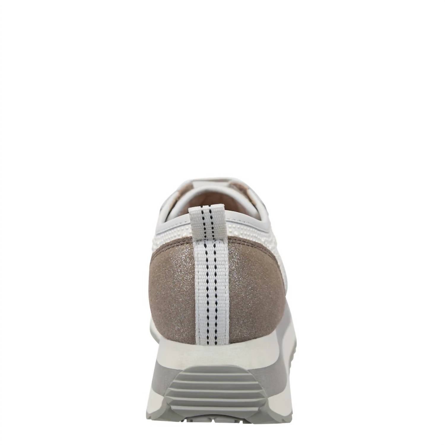 When fashion and function come together seamlessly.Step up your athleisure game in shimmering White Pearl. Effortless yet refined style. Featuring slip-on elastic laces for easy access. Durable high-traction sole. Lightweight EVA foam platform. Offer comfort and functionality. Handcrafted with premium leather and woven textile. Lined with soft fabric for an ultra-plush feel. Artisanal details lend an elevated bohemian chicness. Versatile, stylish, and utterly comfortable platform sneakers.