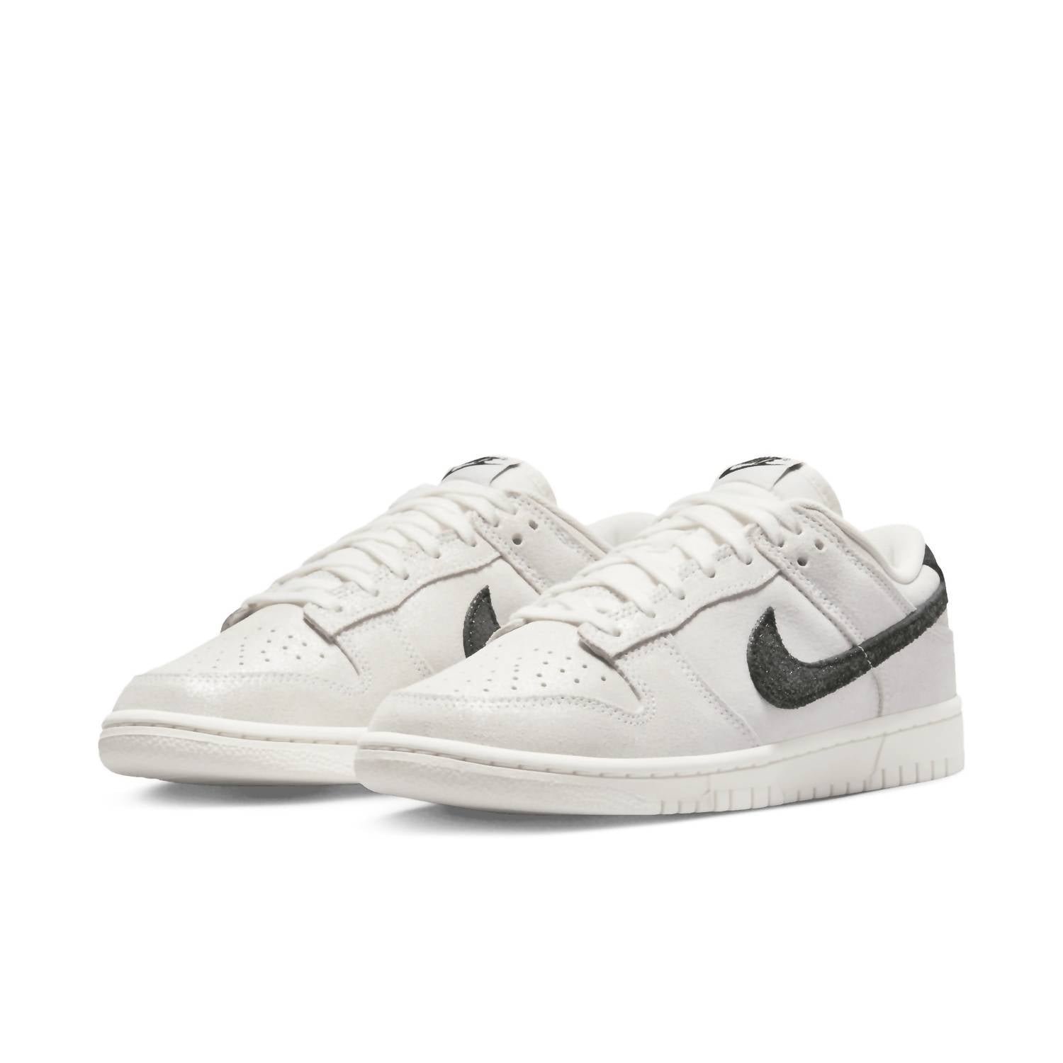 Get your daily steps in with these adorable sneakers.Introducing the Nike Women's Dunk Low SE Sneakers, a staple for any wardrobe with a sleek white and black colorway. Crafted from premium leather, this timeless sneaker features a low-cut collar and foam insole for exceptional comfort. Built for versatility, the foam midsole provides lightweight responsiveness, while a durable rubber outsole ensures reliable traction. The vintage charm intensifies as the upper softens with wear, enhancing its heritage appeal.