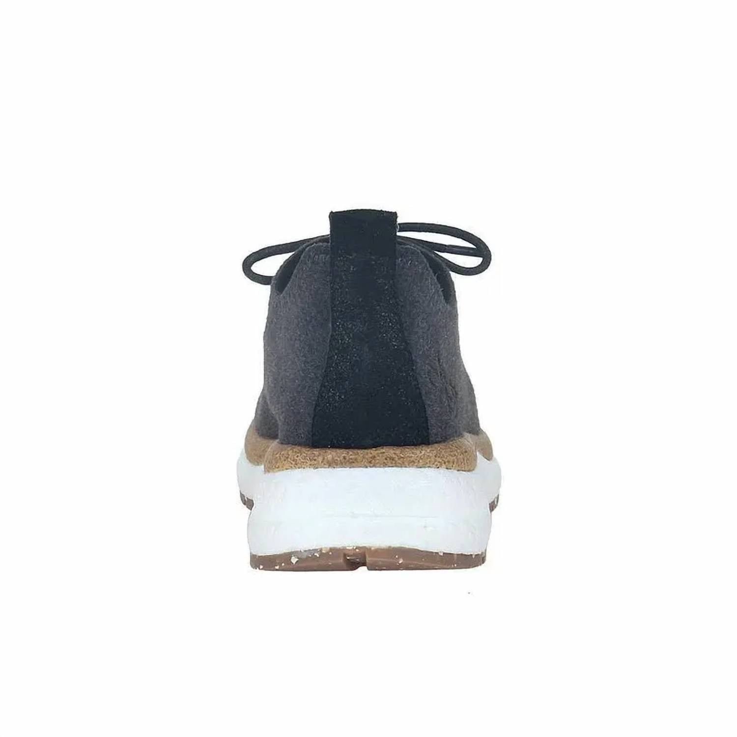 Cute, functional, and comfortable. These sneakers check all the boxes.Step into comfort and style with the Women's Courier Sneaker by OTBT, showcasing a contemporary design in classic charcoal. Crafted with a wool blend fabric, this sneaker features a soft, completely unlined upper that is flexible for easy packing, perfect for those on the go. The sneaker includes cotton laces, distressed metal hardware, and a removable EVA, FlexCork footbed with Step Lite spring back technology, ensuring superior comfort with a 1.77′ wedge heel and a 1.1′ platform. Complete with a recycled rubber lug sole, this sneaker combines form and function for reliable summer wear.