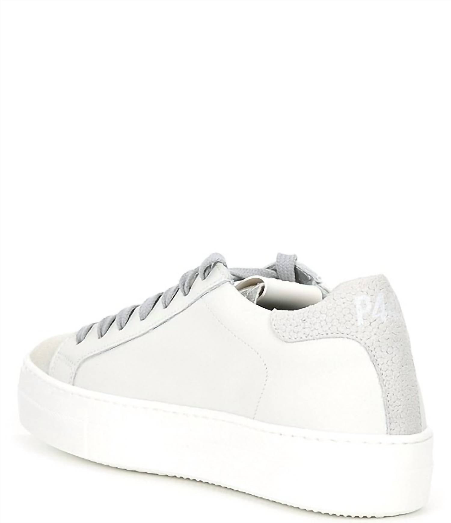 Cute, functional, and comfortable. These sneakers check all the boxes.Step up your sneaker game with the Women's Thea Sneaker White Laser by P448, offering effortless style with a touch of luxury. These Italian-made mid-top sneakers showcase a platform height of 1.37 inches for an elevated look and feature a leather upper complemented by a perforated side logo. With a metallic tongue and a textured heel counter, they're sure to stand out on the street. Complete with a lace-up closure and removable insole, this stylish pair is designed for comfort and versatility.