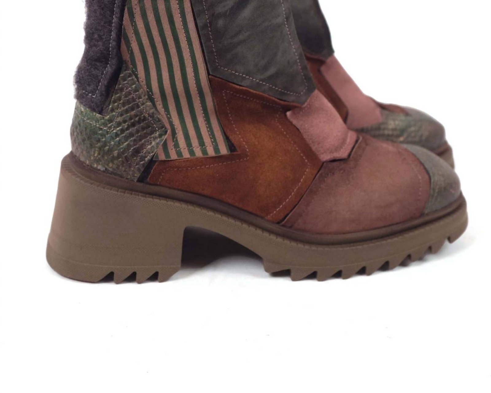 The moto boot trend is here to stay and we especially love this style.Meet the Lizzie Boot by Papucei, a stylish choice in versatile Kaki leather that makes it a must-have for any wardrobe. This women's boot, designed with a comfortable round toe and chunky heel silhouette, ensures you stay cozy with its nice felt lining. Crafted for easy wear, it features a convenient side zipper closure. Perfect for combat & moto boot lovers seeking both style and comfort.